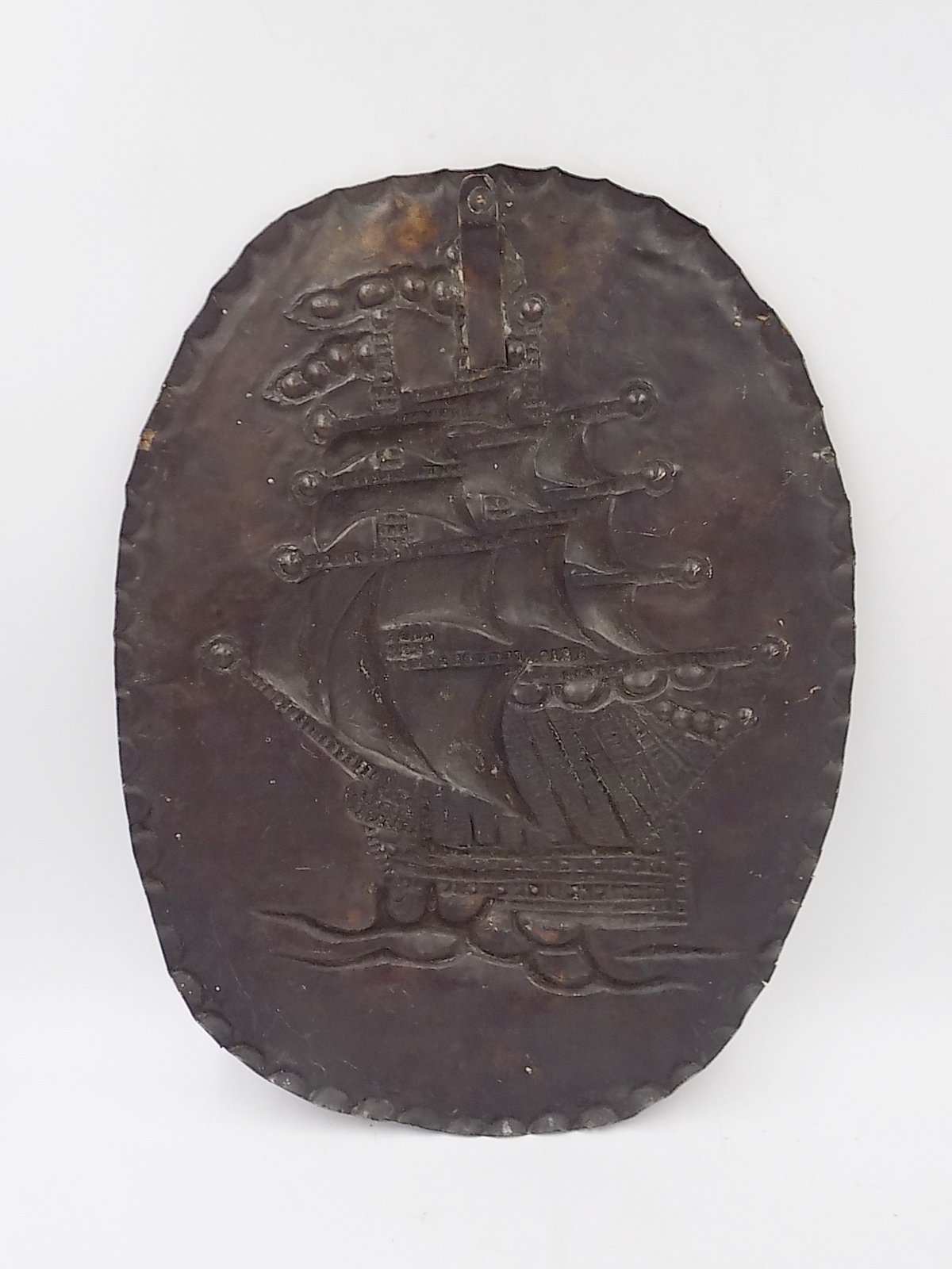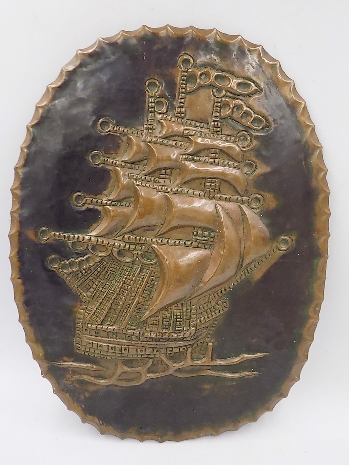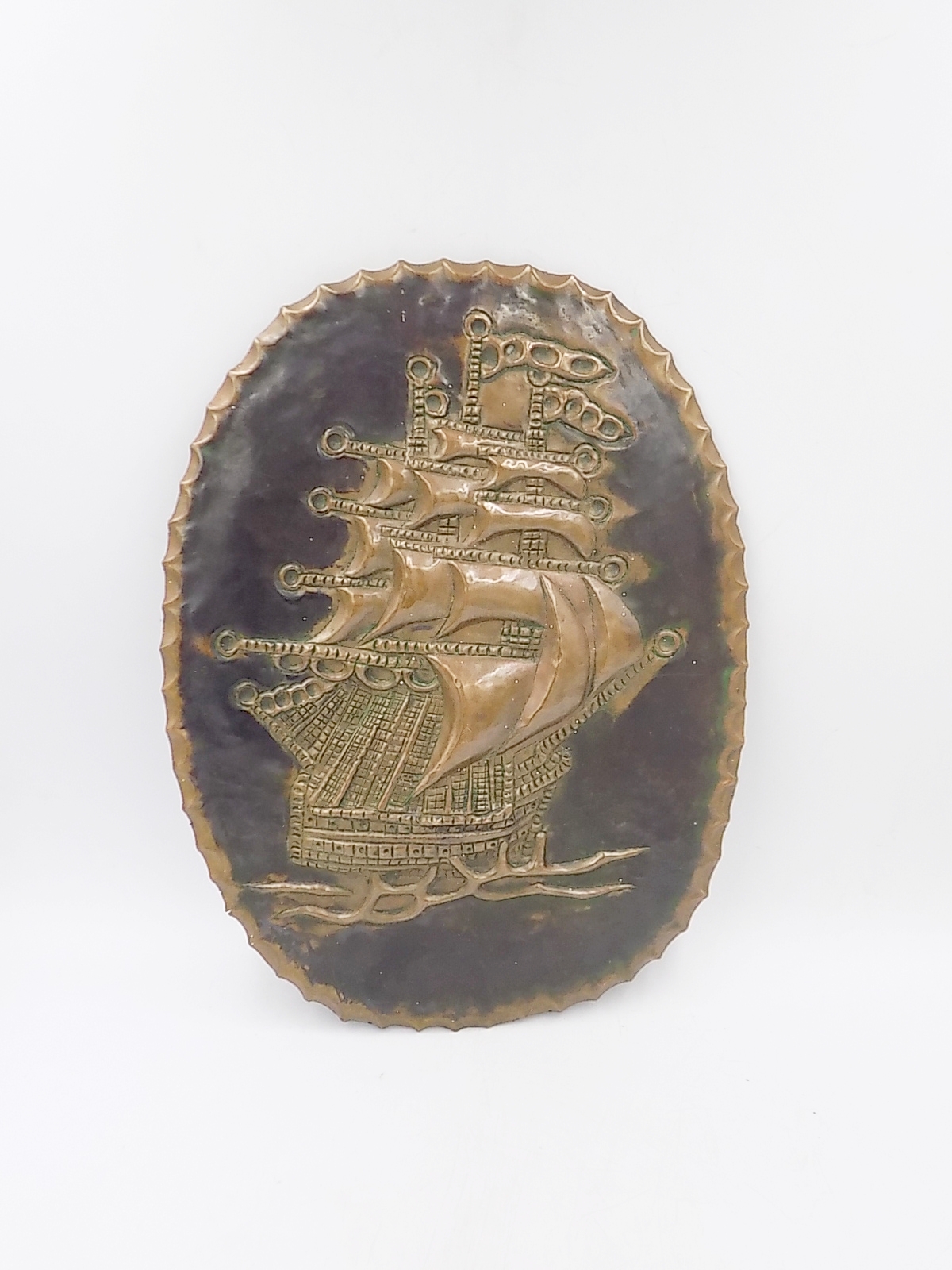 Dekoracja ścienna z dłoczonej plachy z miedzi z okresu PRL. Wymiary; 34 x 25,5 cm