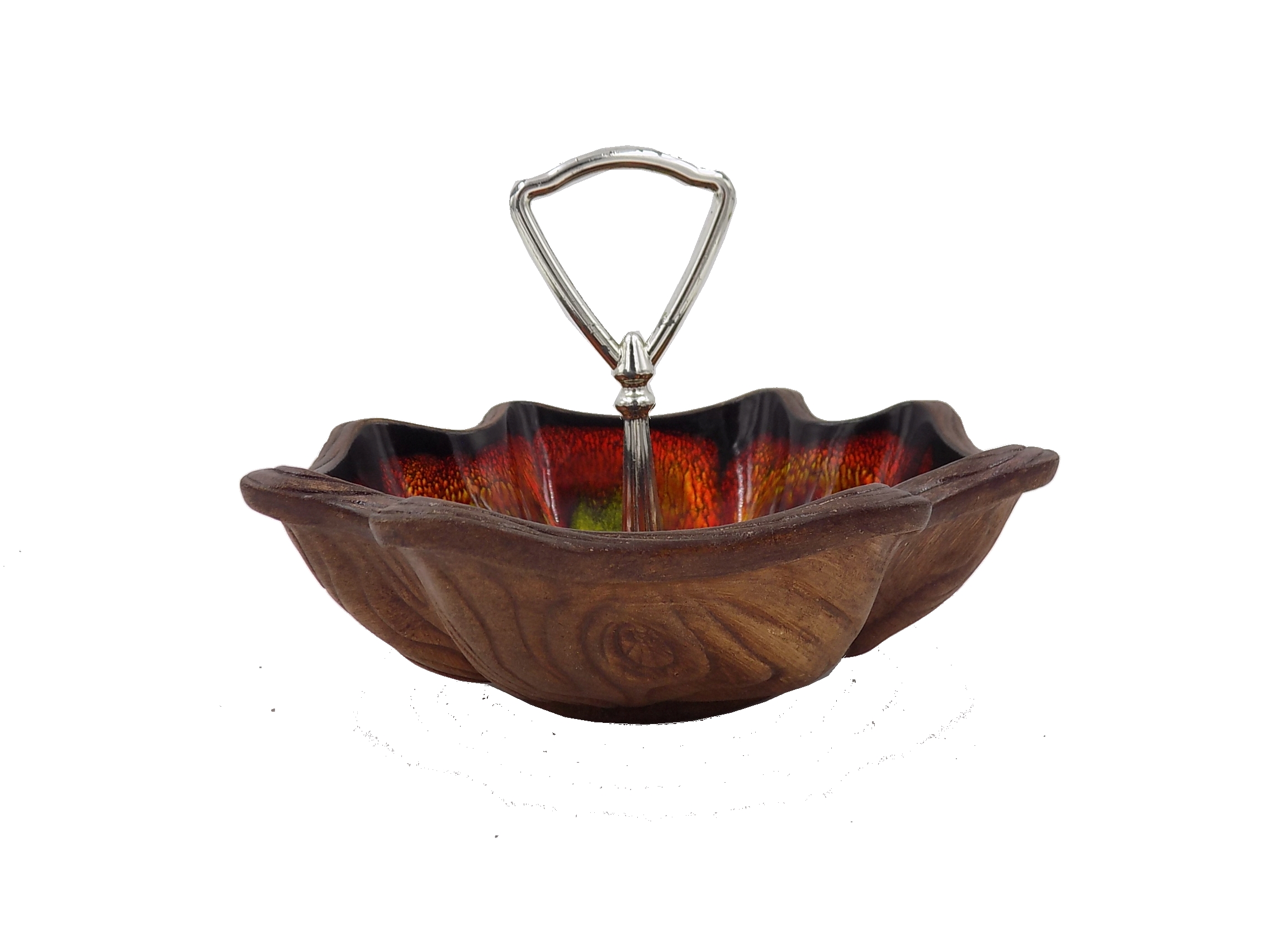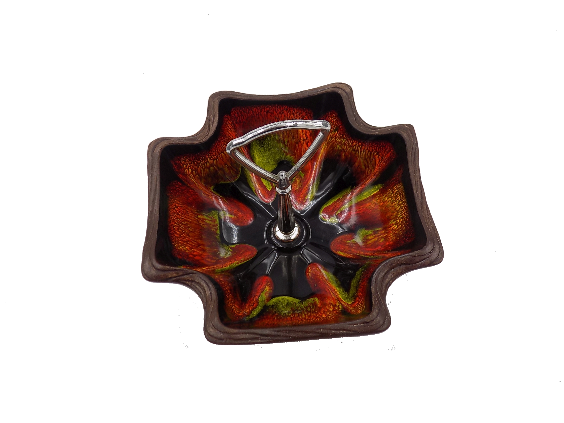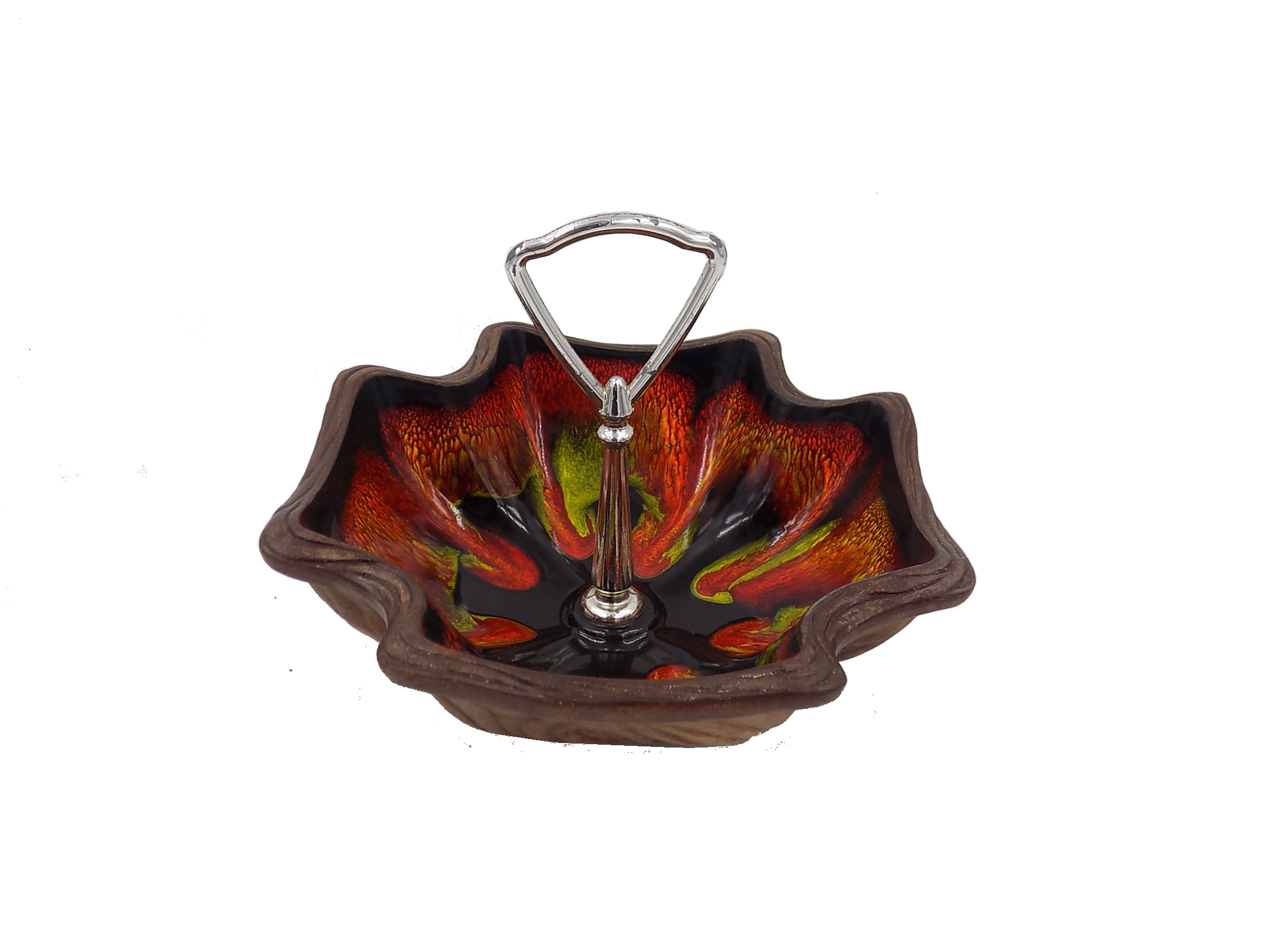 Kamionkowy koszyk z uchwytem z cudowną glazurą. Pochodzenie USA. Sygnowany. Wymiary; wys.13(6) x 17 cm.