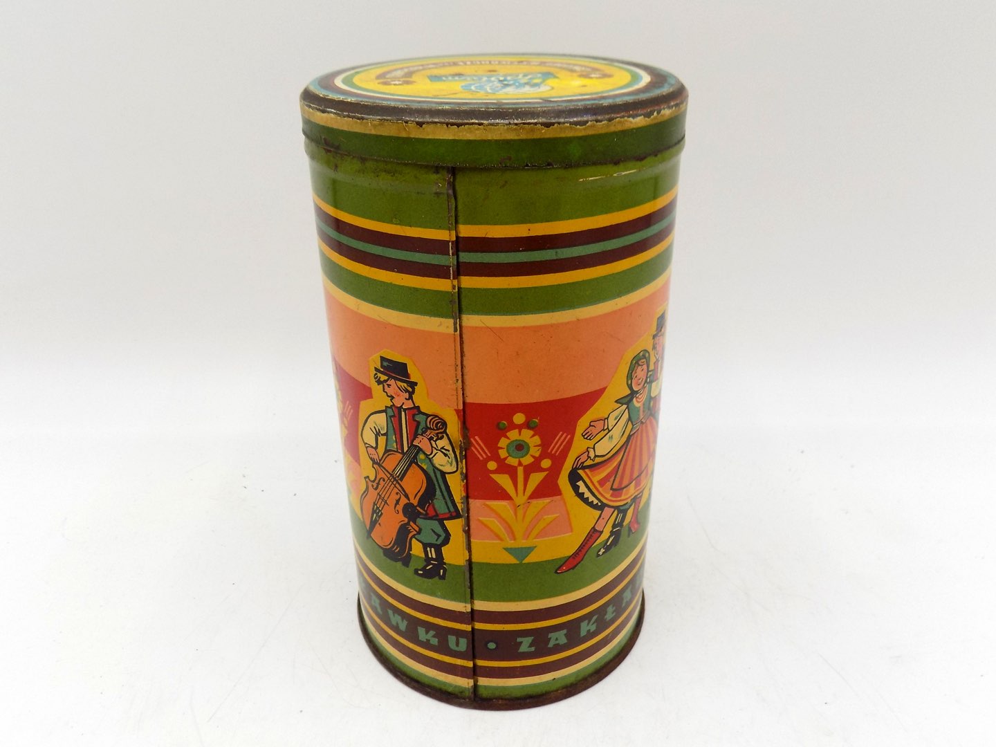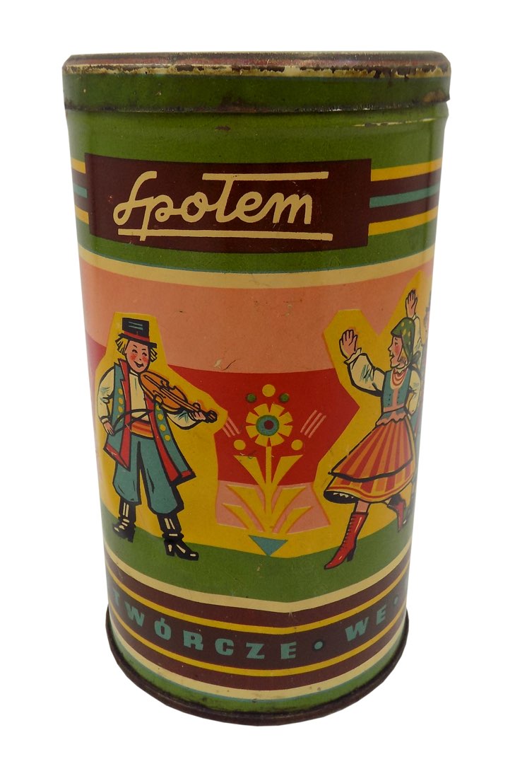 Blaszana puszka Społem PRL - historia i styl w jednym produkcie.