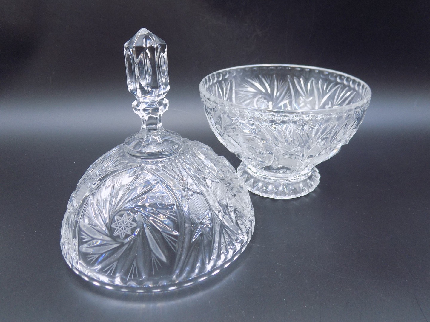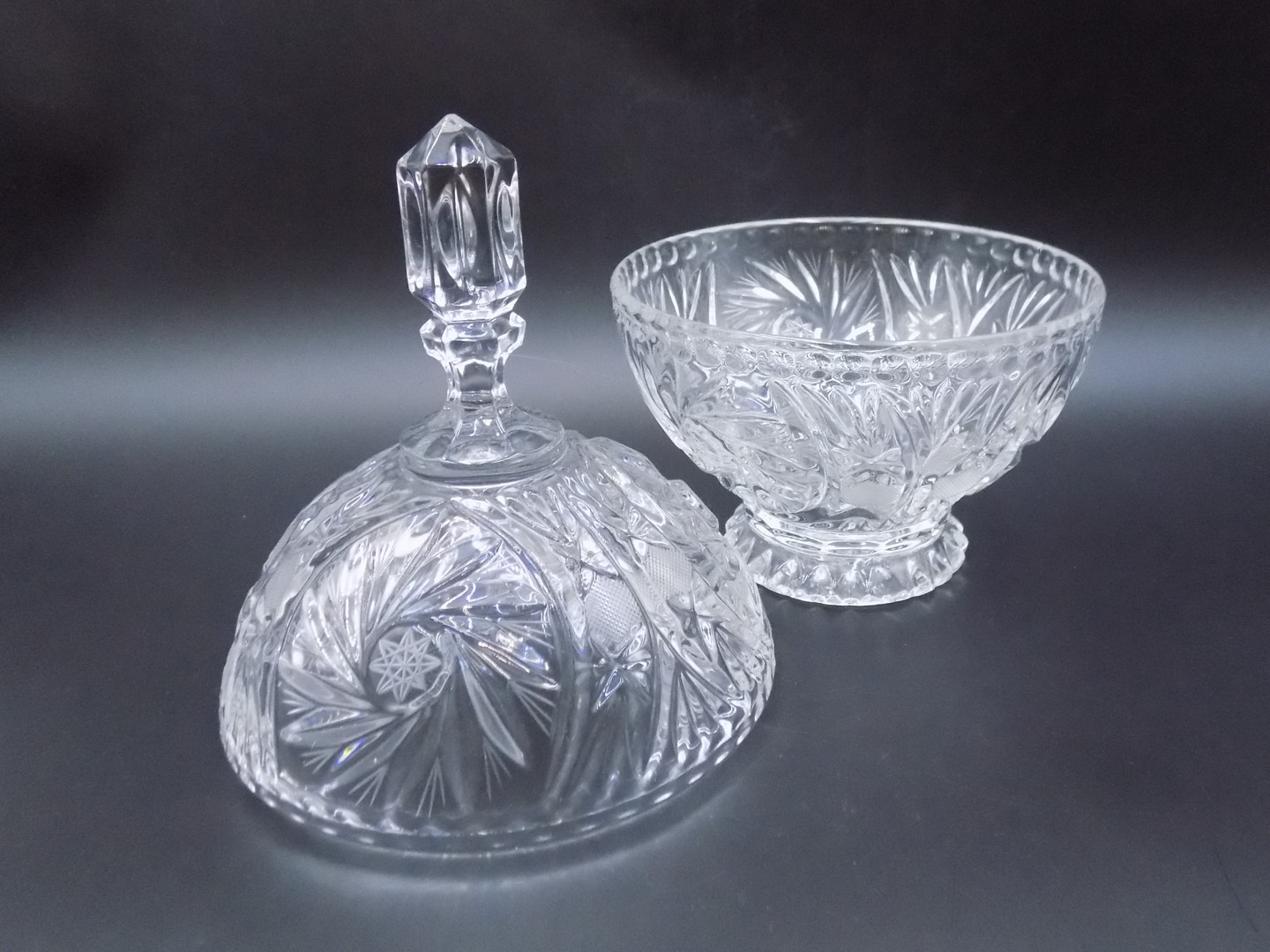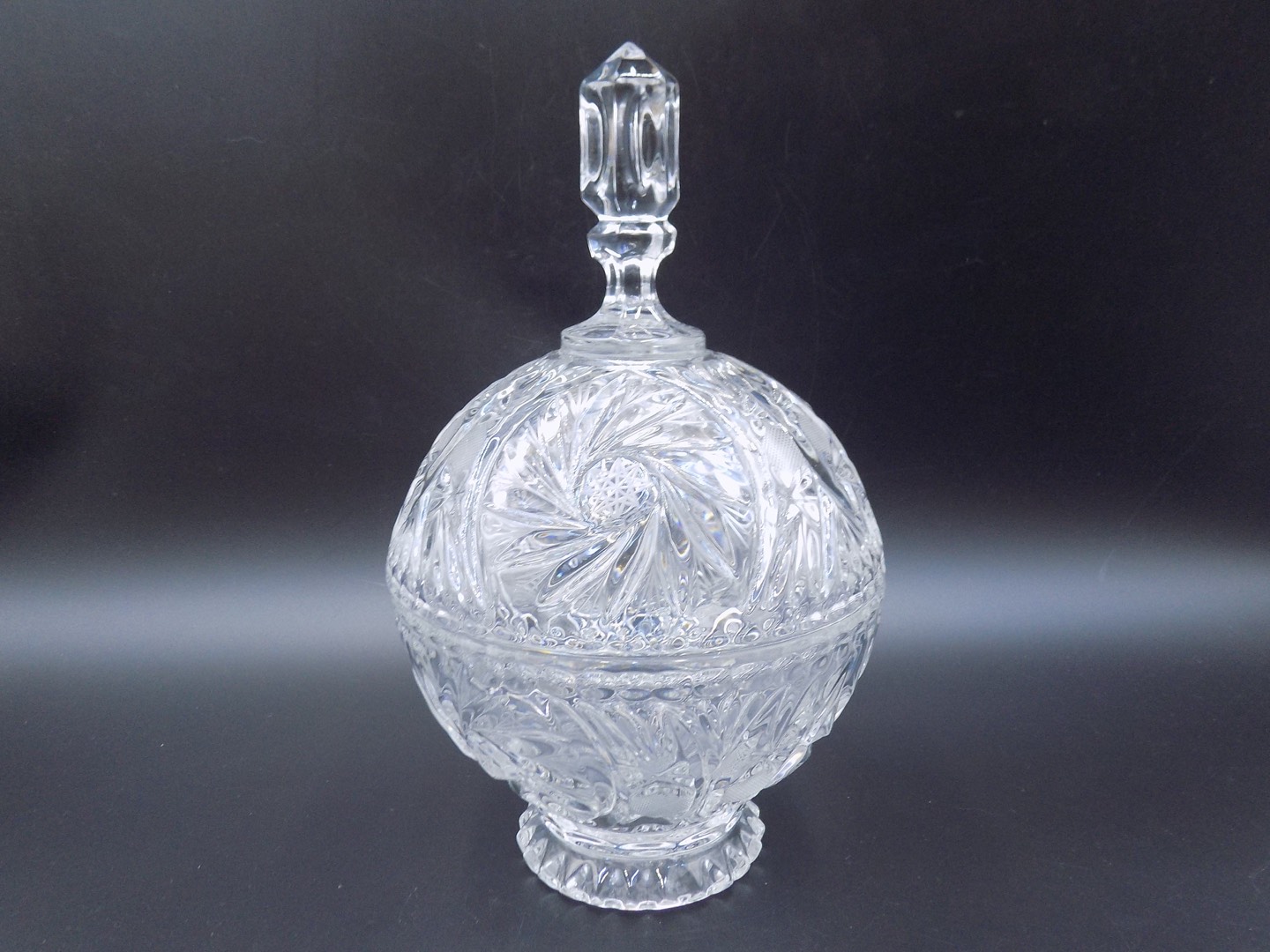 Wycięcie w formie delikatnych wiatraczków, zdobiące bombonierkę, to wyjątkowy przykład umiejętności mistrzów szkła. Każdy element tego szlifu, precyzyjnie wykończony, tworzy subtelny taniec światła, który nadaje bombonierce wyjątkowego charakteru. W rezultacie bombonierka staje się nie tylko funkcjonalnym przedmiotem, ale także prawdziwym dziełem sztuki, które zachwyca oko i daje poczucie wyjątkowości.