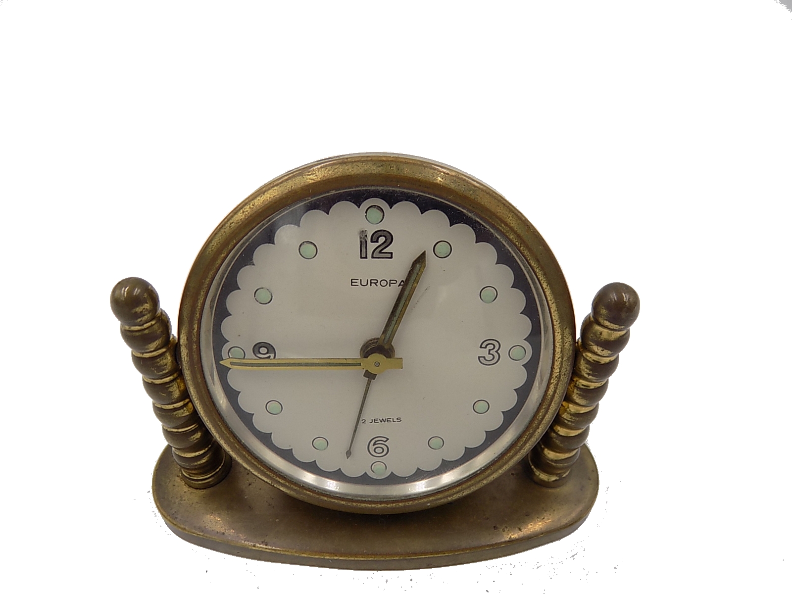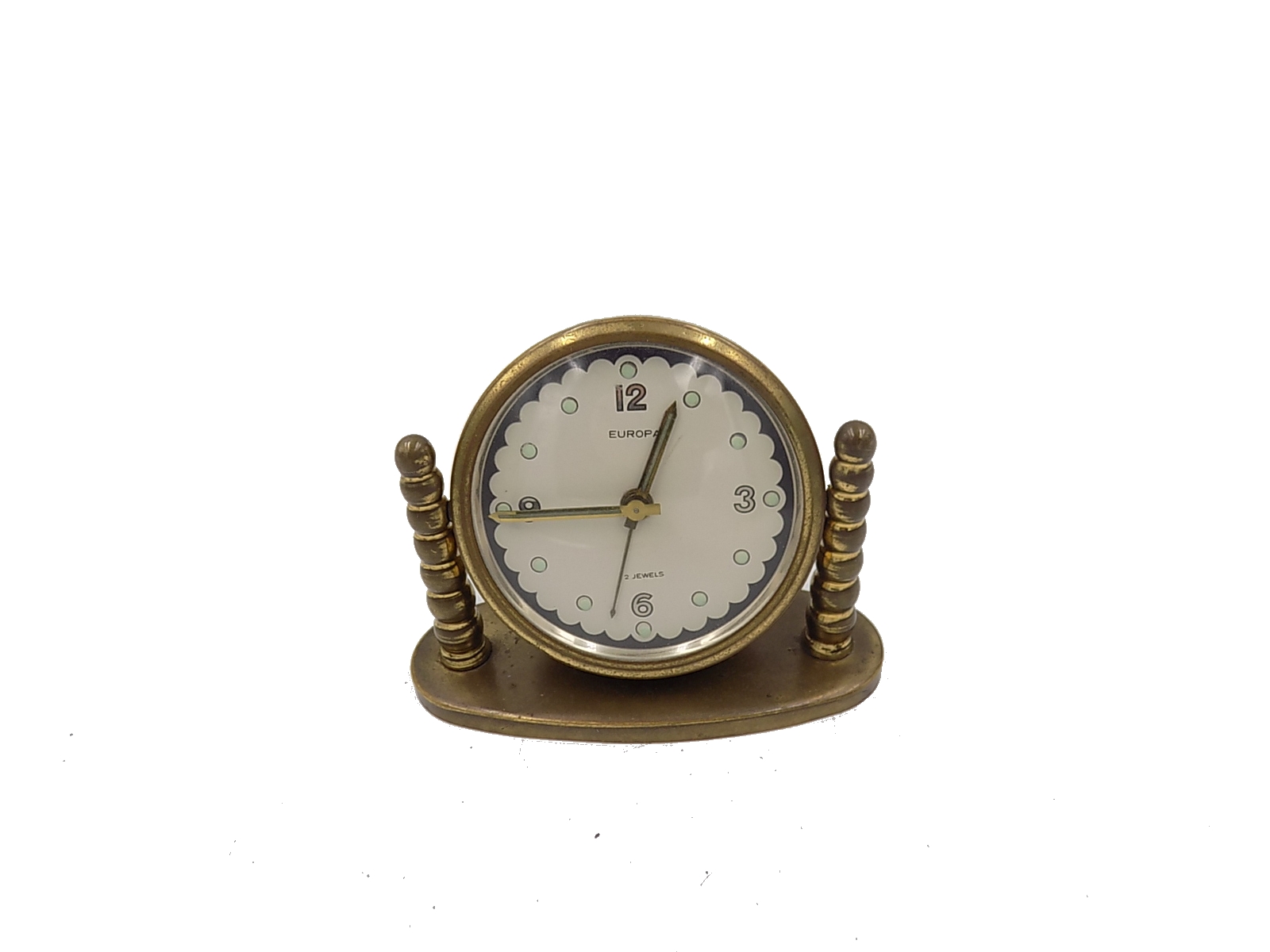 Budzik z lat 50/60-tych. Pochodzenie; Niemcy Zachodnie. Sprawny. Po przeglądzie zegarmistrzowskim. Wymiary; wys. 7 x 9 x 4 cm