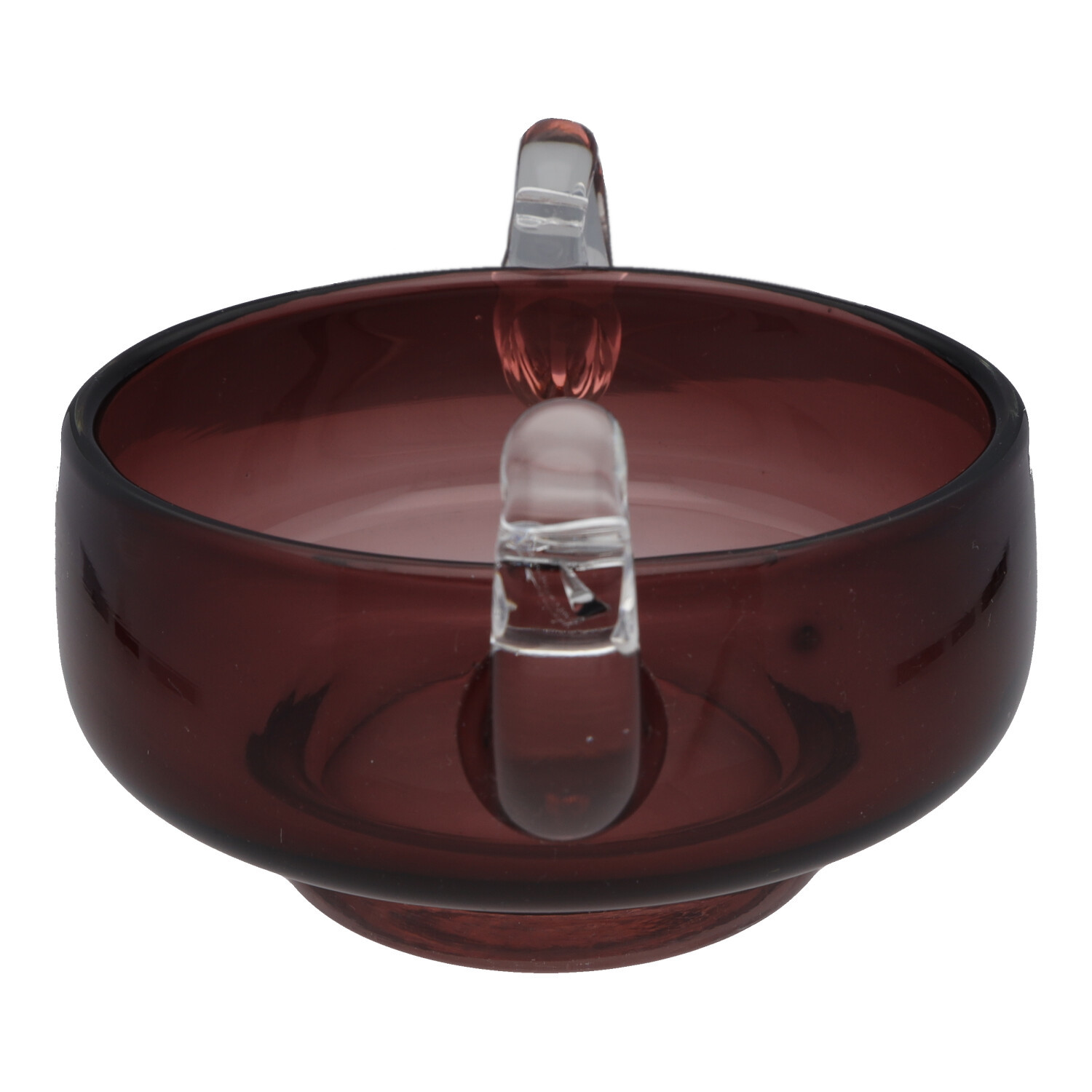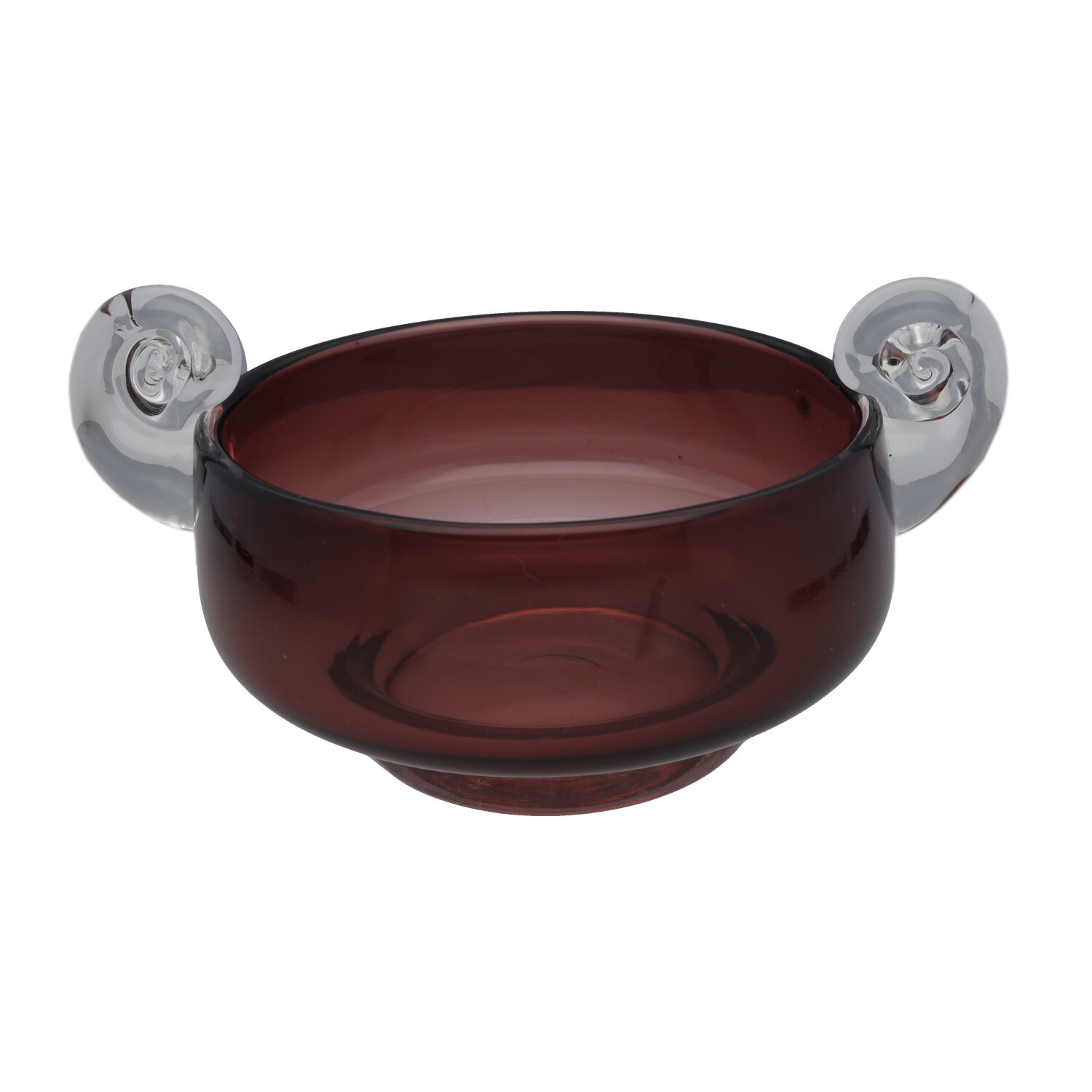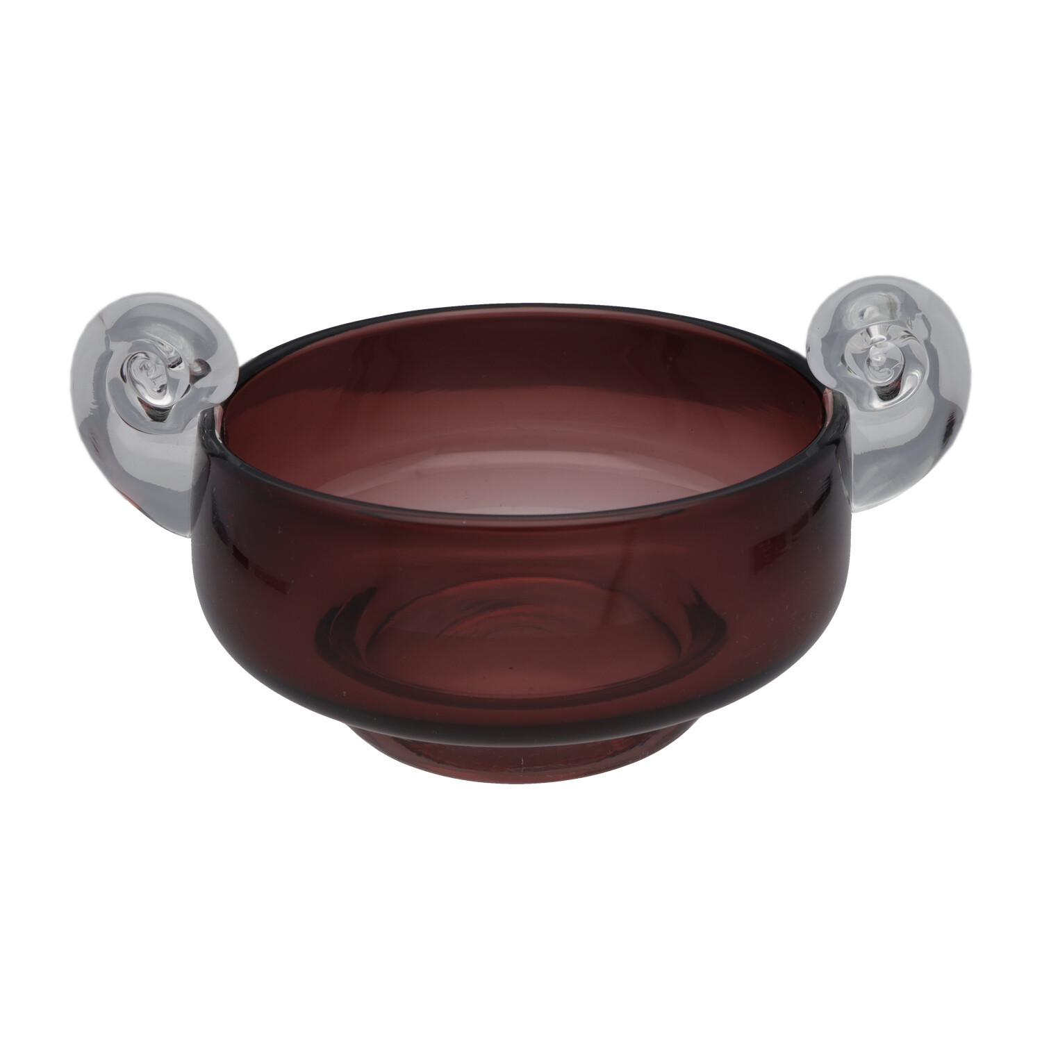 Miseczka z ręcznie formowanego dwuwarstwowego szkła sodowego, barwionego w masie z lat 80-tych XX w. z Huty Szkła Tarnowiec. Wzór 310, zaprojektowany przez Jerzego Słuczan-Orkusz.