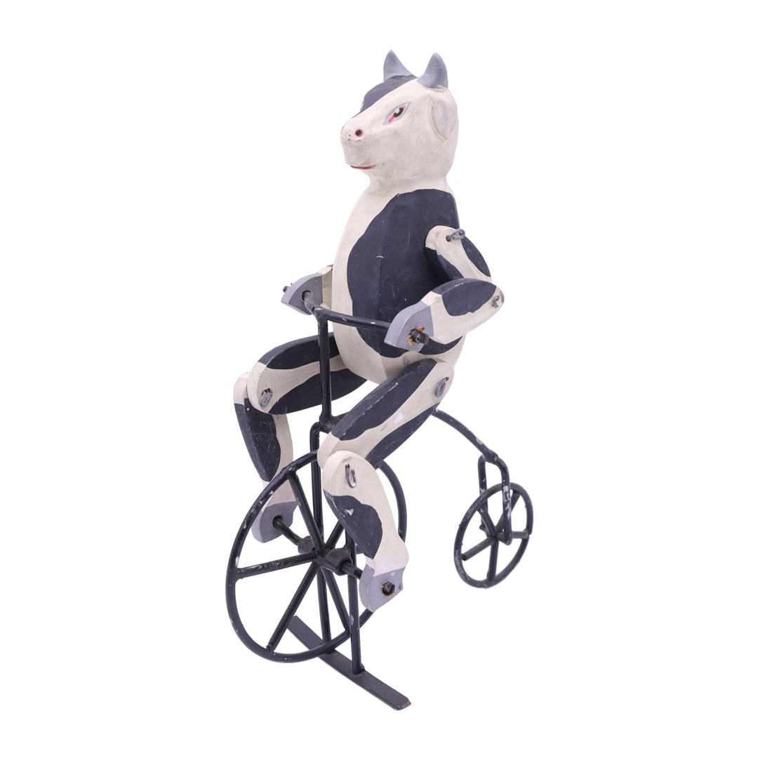Przedstawiamy niezwykłą dekorację, która przenosi nas w czasie do epoki, w której ręczne rzemiosło i autentyczność tworzenia były na pierwszym miejscu. Nasza dekoracja w postaci krowy na rowerze to doskonały przykład harmonijnego połączenia drewna i metalu, które łączą się w jedno wyjątkowe dzieło sztuki.