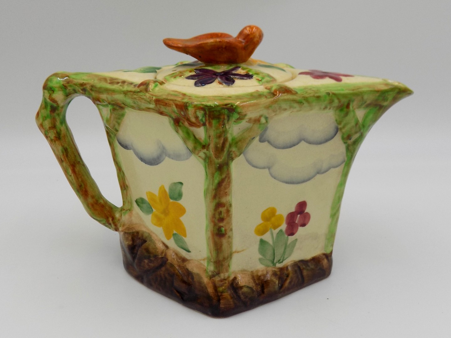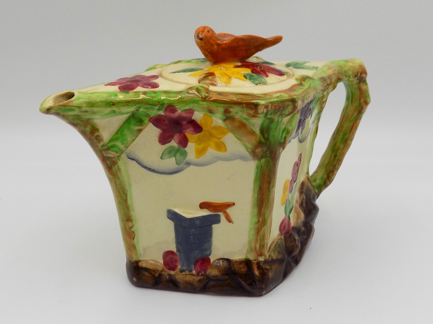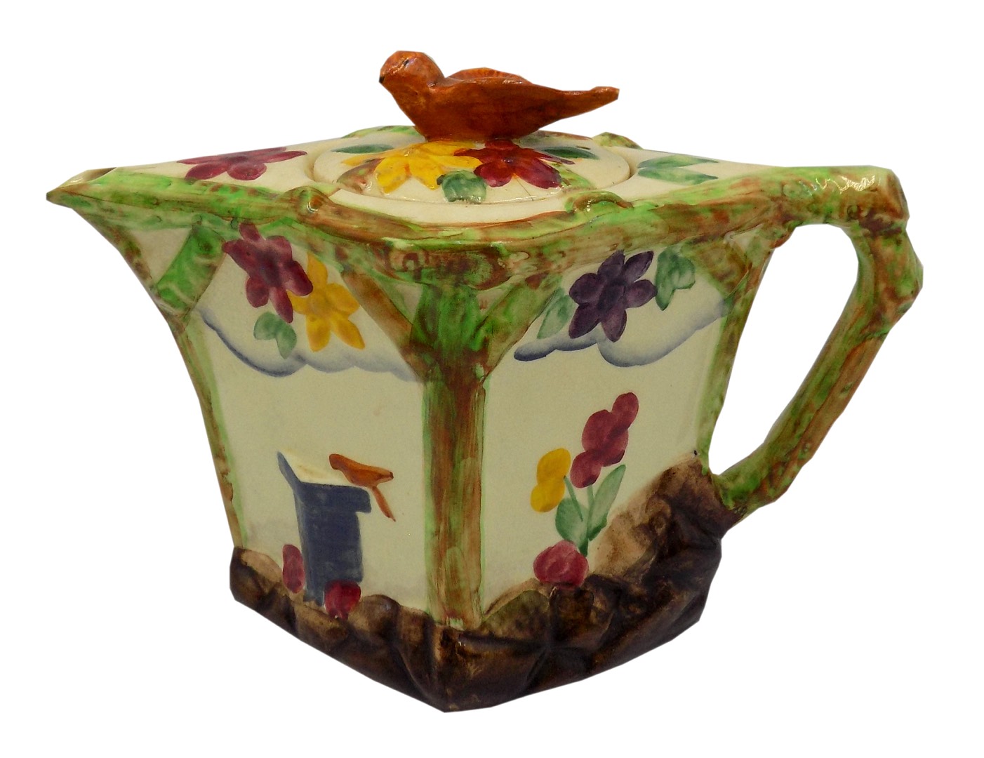 Dzbanek z majoliki z renomowanej manufaktury ceramicznej Wade England. Ten ekskluzywny przedmiot nosi charakterystyczny podpis Wade Heath & Co., (Ltd.), datowany na lata 1927-1953, co podkreśla jego autentyczność i wartość historyczną.