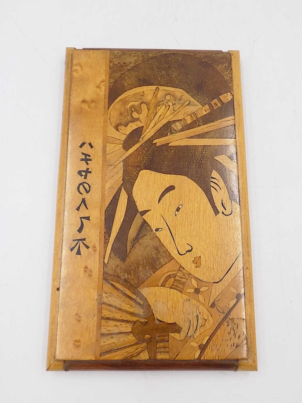 Stare intarsjowane etui. Wymiary; 14,7 x 8,5 cm.
