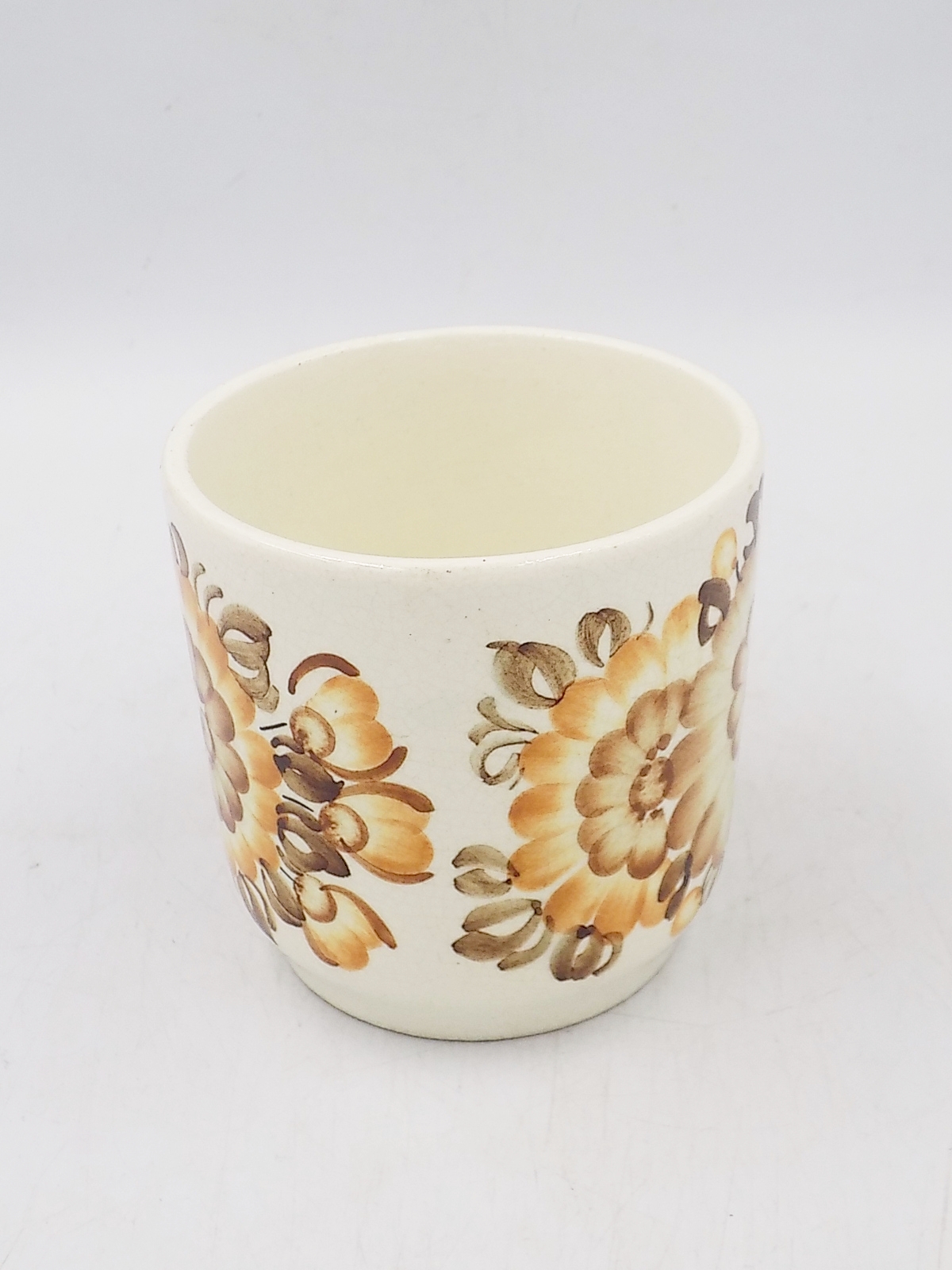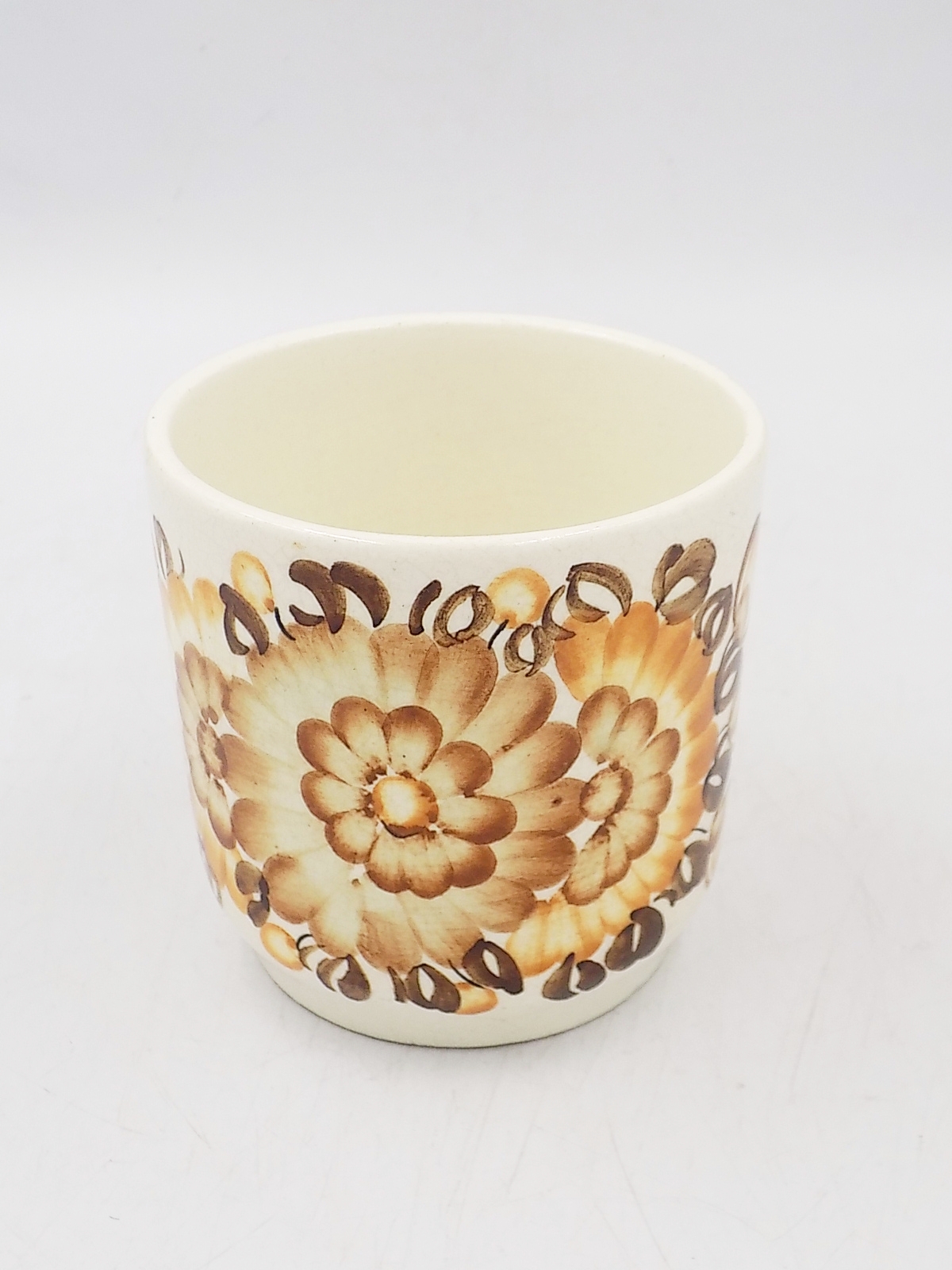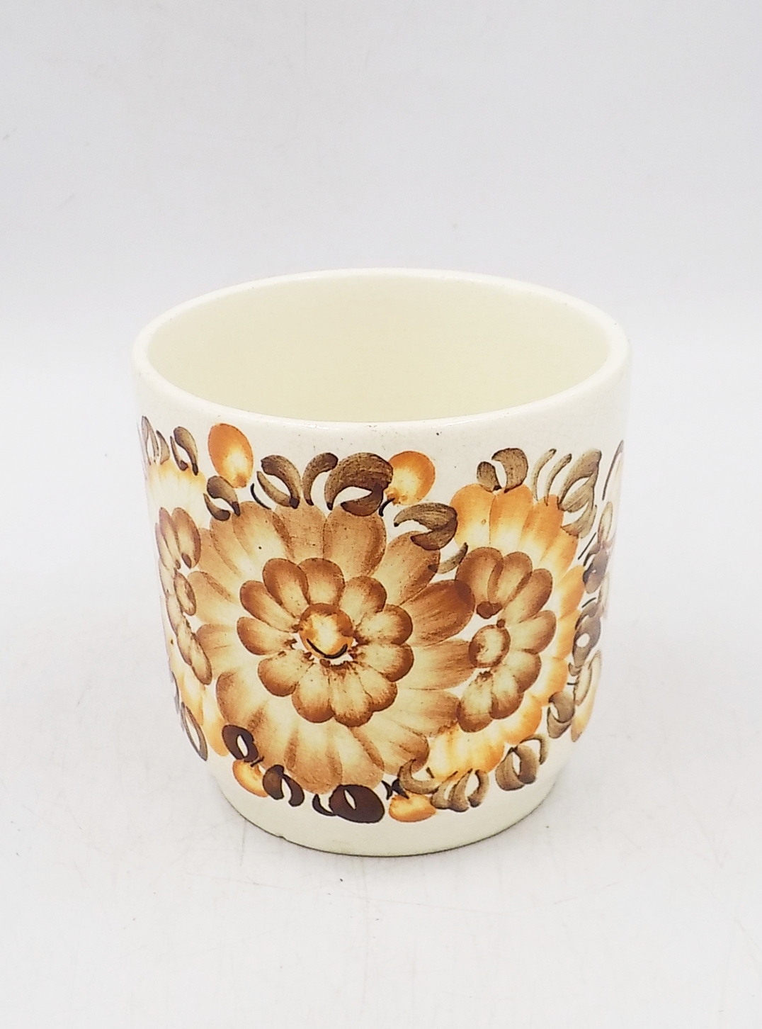 Fajansowy kubek z Koła z lat 60/70-tych. Sygnowany. Ręcznie malowany. Wzór 67/4. Wymiary; wys.9,5 x 9,5 cm