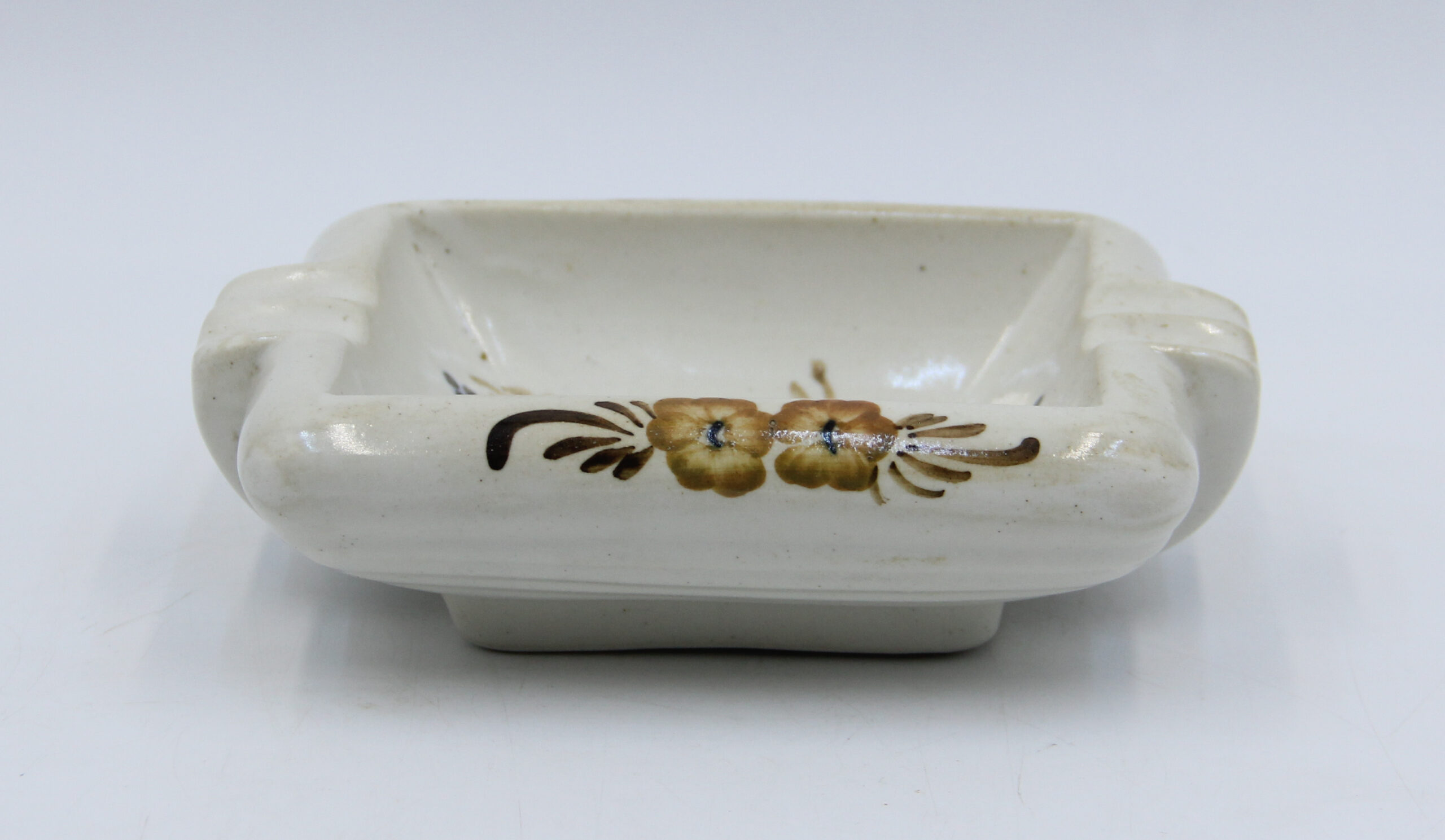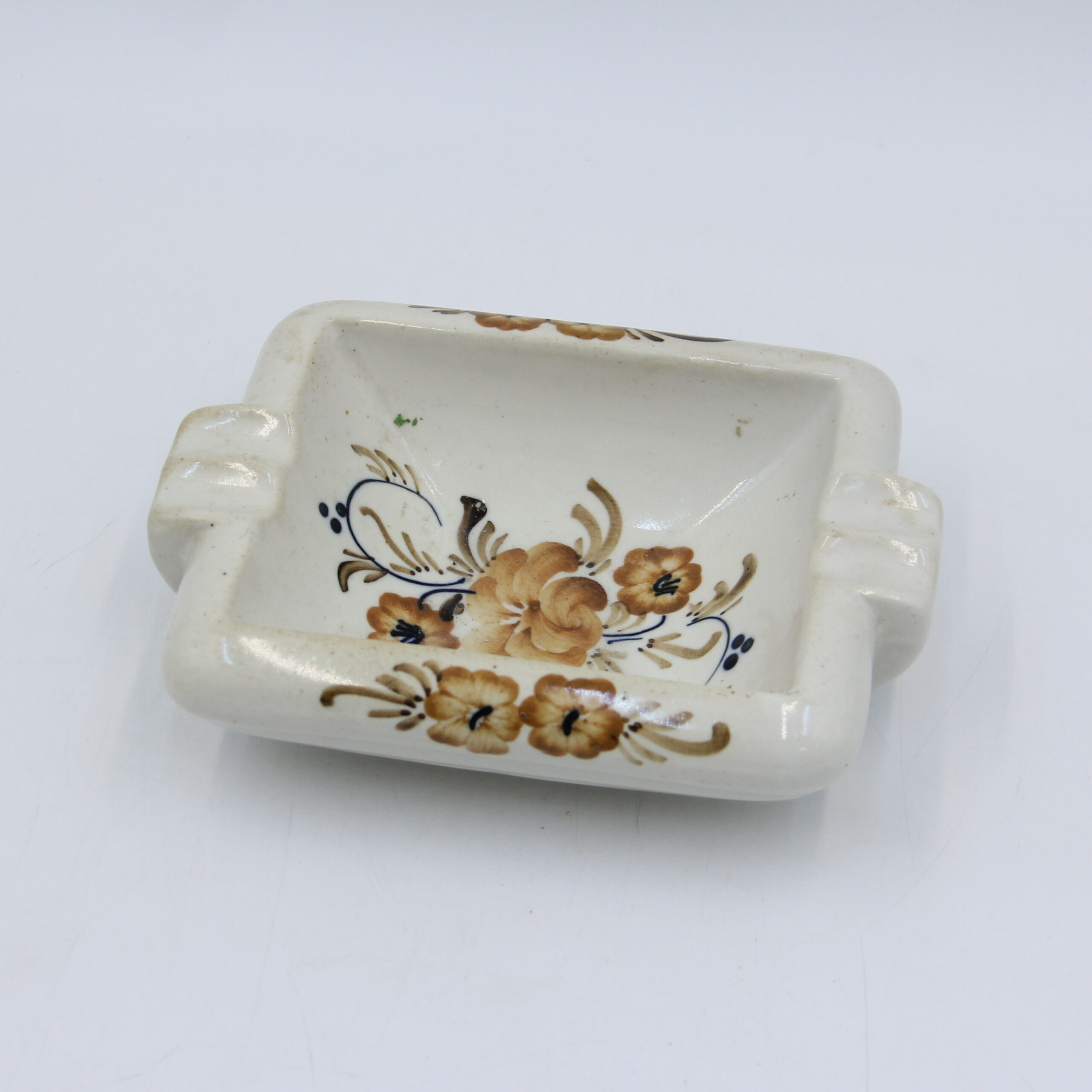 Fajansowa popielniczka z Włocławka z lat 70/80-tych. Sygnowana. Ręcznie malowana przez Nowakowską. Wzór nr 1 z roku 1953.