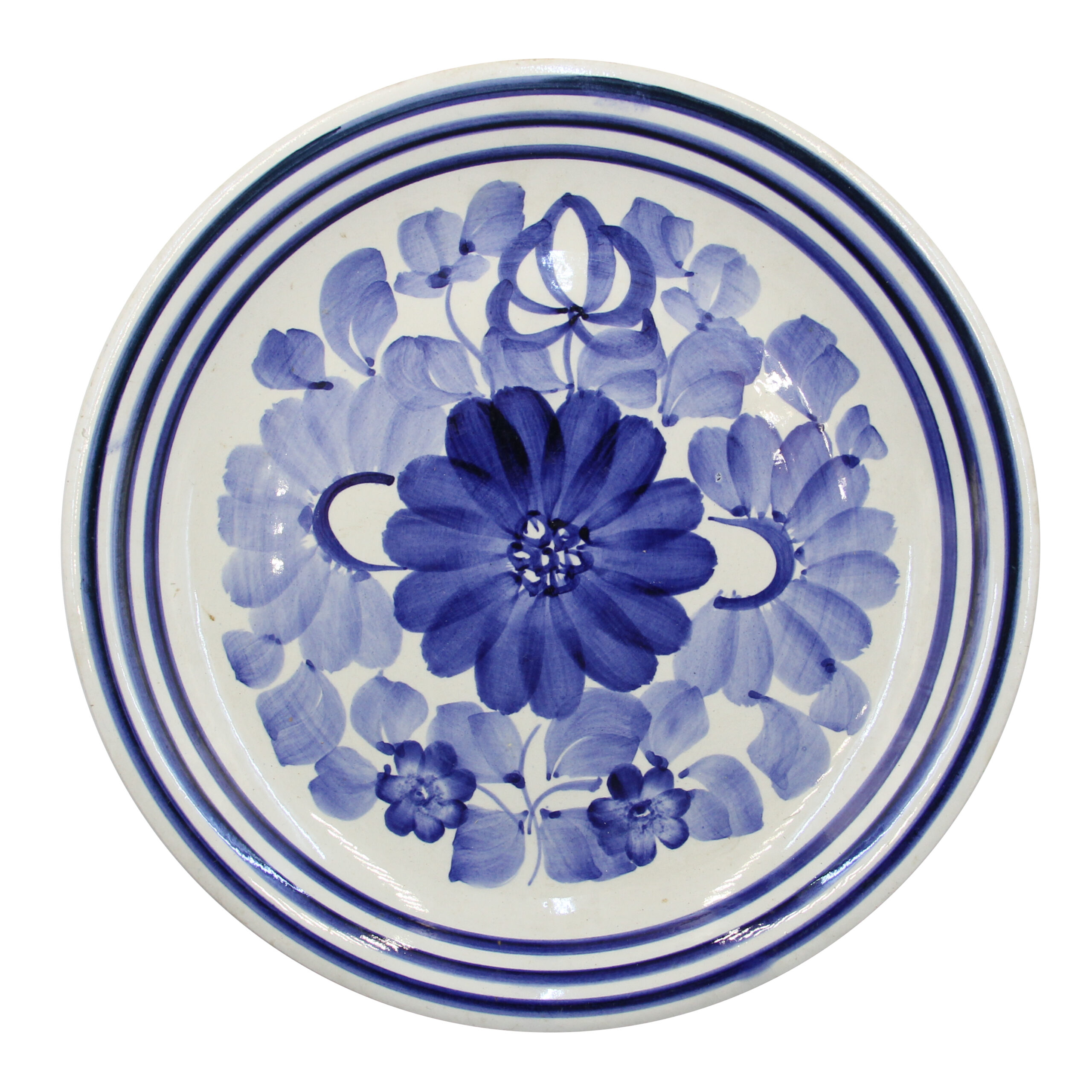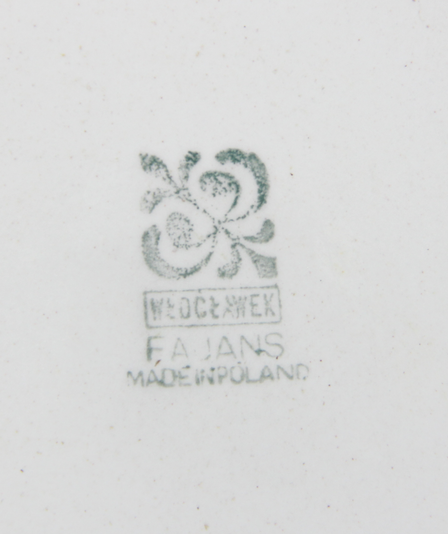 Fajansowy talerz dekoracyjny z Włocławka z lat 70/80-tych. Sygnowany. Ręcznie malowany.