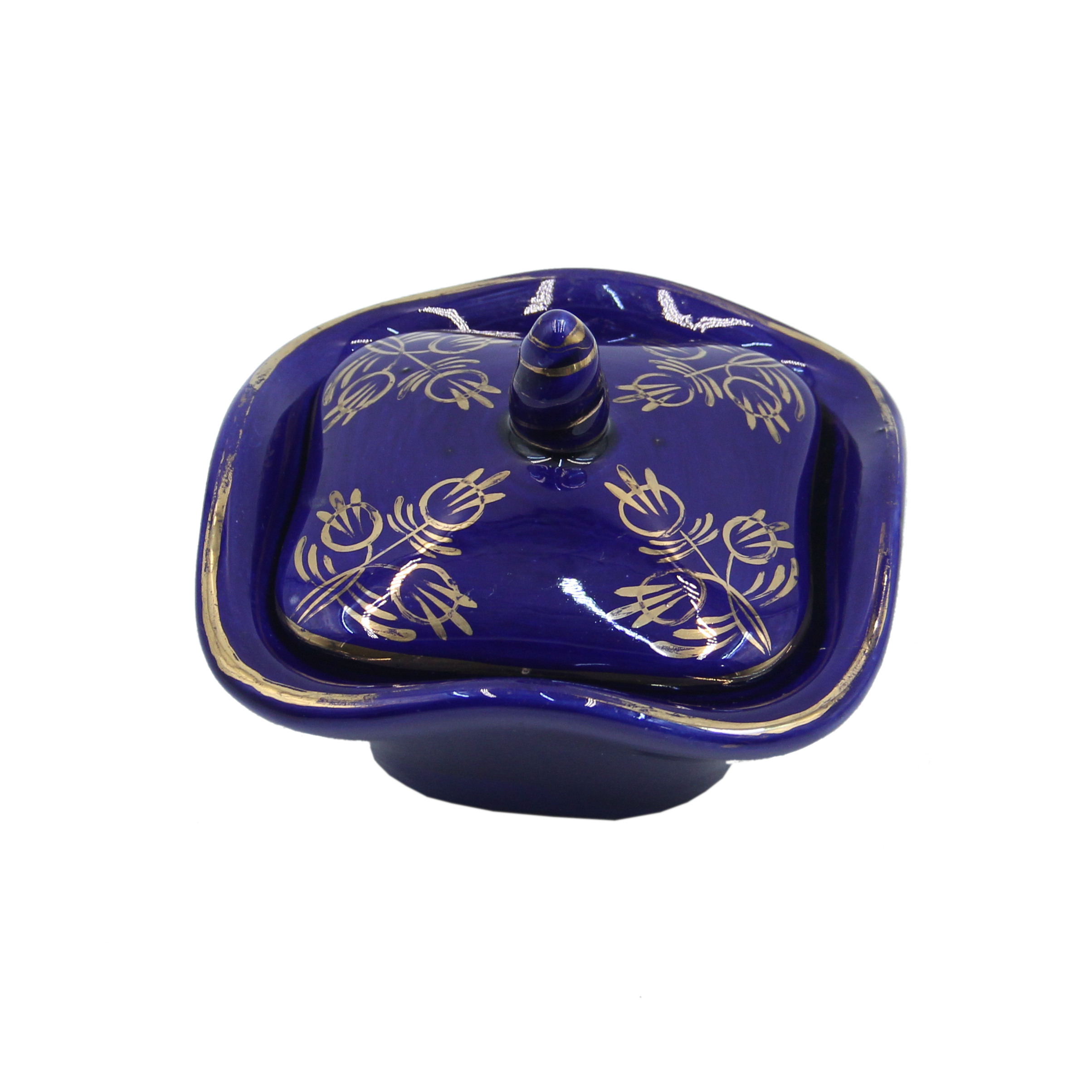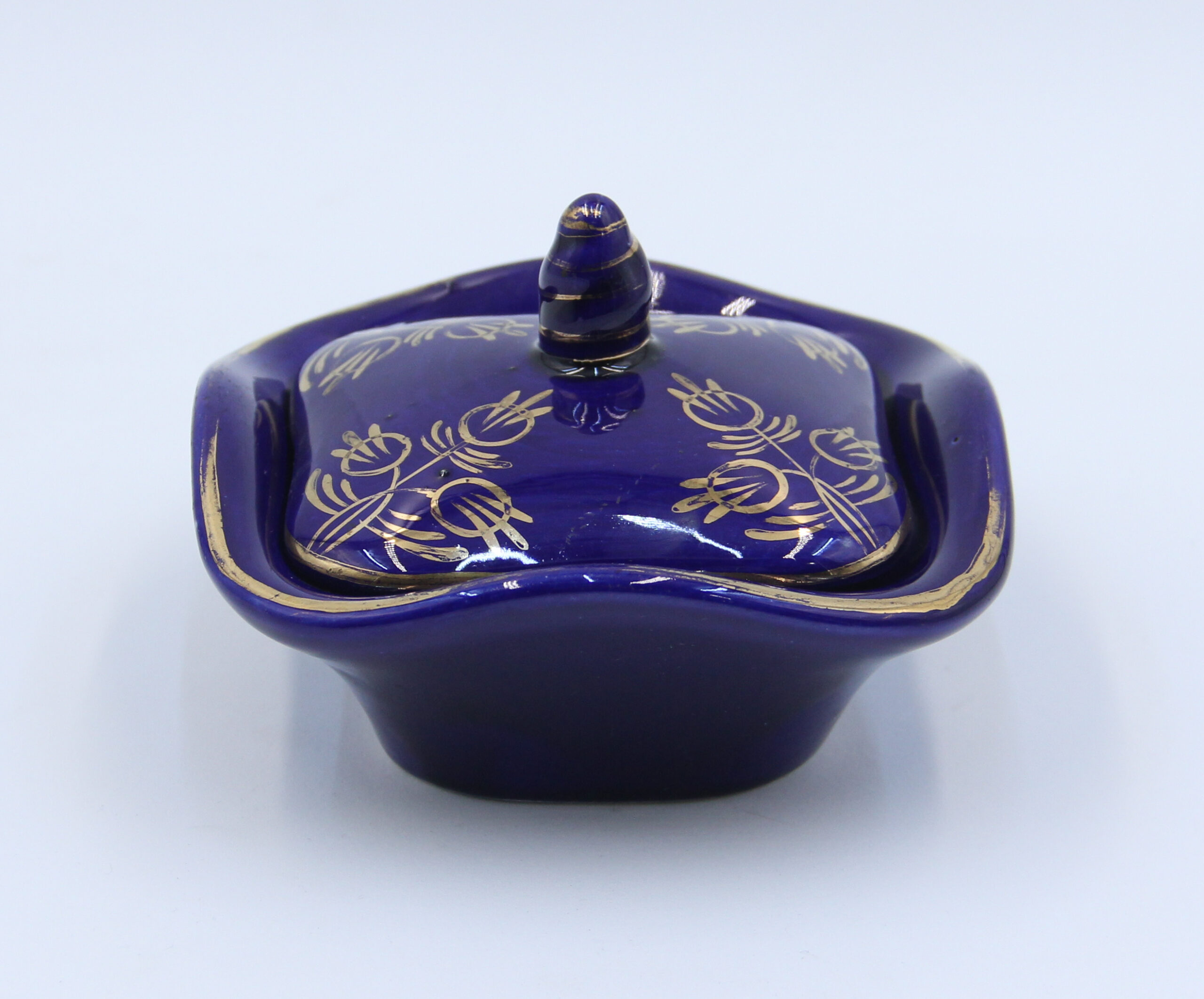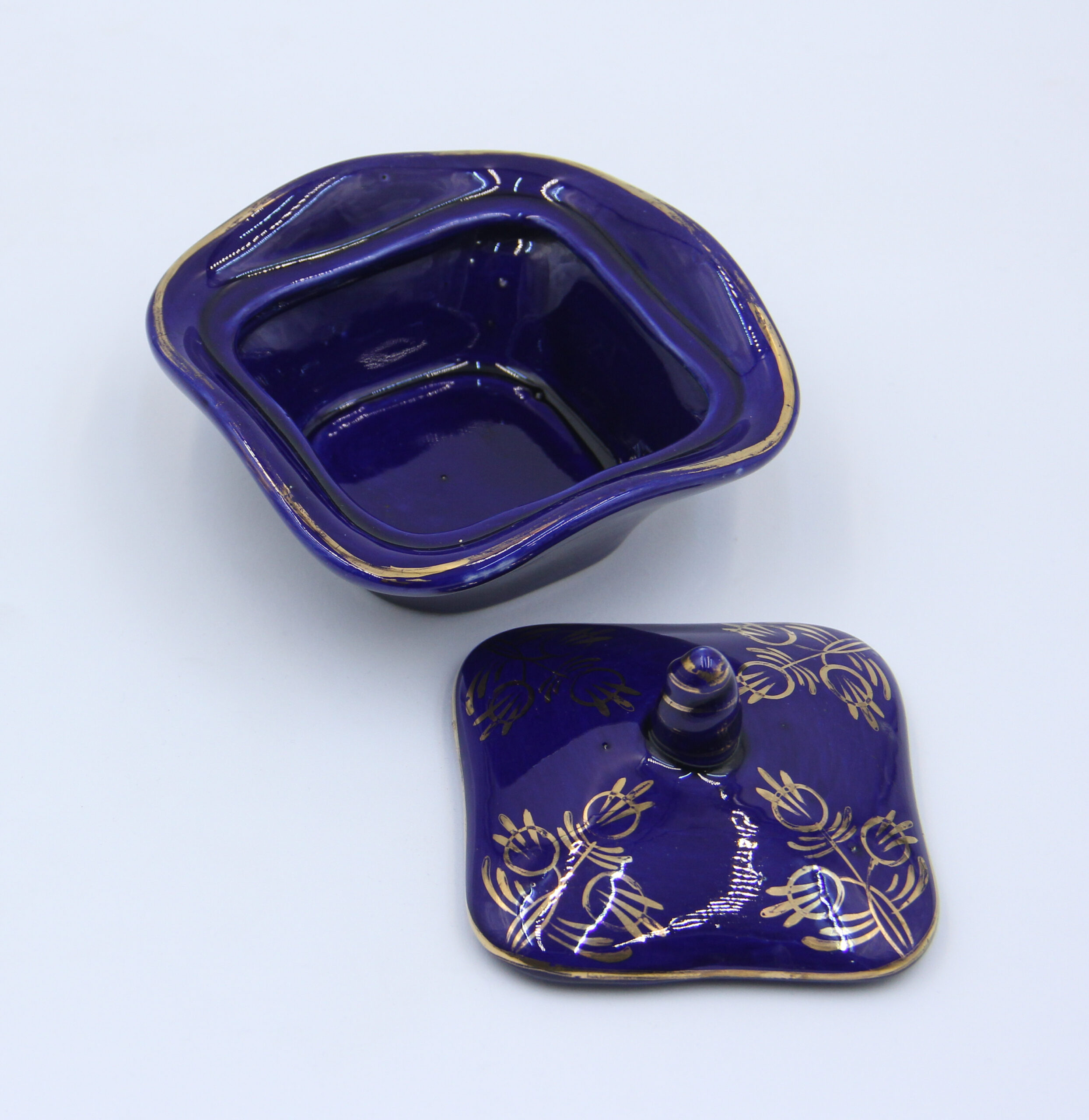 Kobaltowa bombonierka. Fajans Włocławek. Wzór 344 zatwierdzony przez IWP w 1958/59 roku.