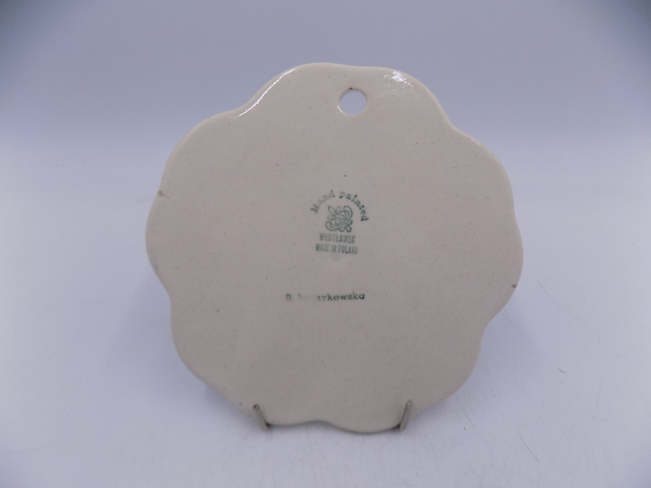 Fajansowa deska z Włocławka z lat 70/80-tych. Sygnowana. Ręcznie malowana przez B. Waszak. Wymiary; 16 cm