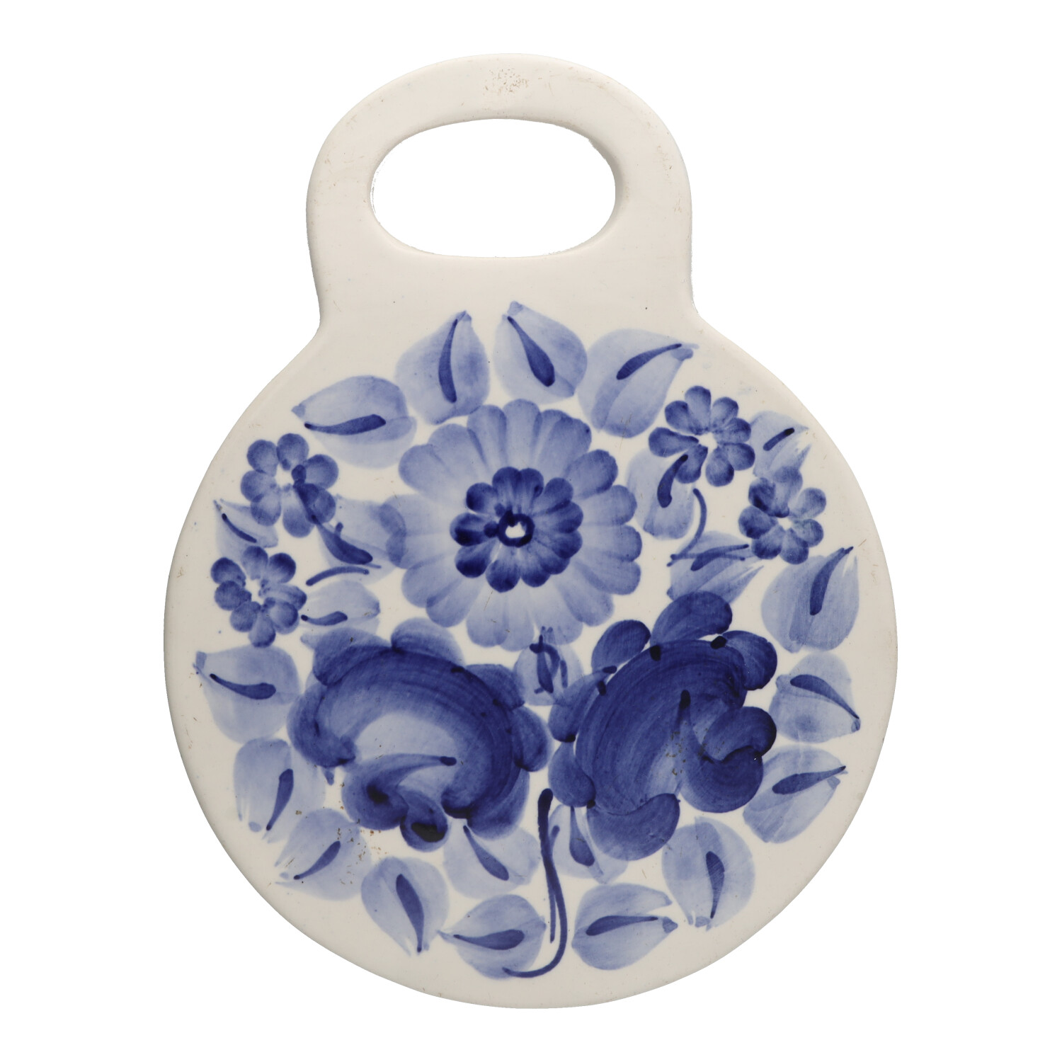 Fajansowa deska z Włocławka z lat 70/80-tych. Sygnowana. Ręcznie malowana przez M. Bykowską.