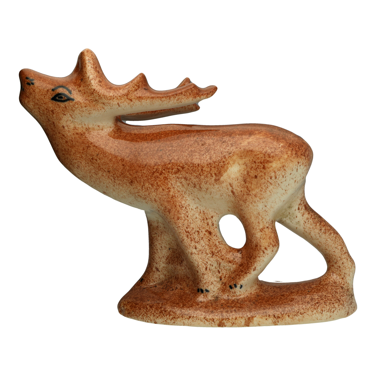 Fajansowa figura przedstawiająca jelenia z Włocławka z lat 60-tych. Wymiary: 17 x 22 x 7 cm. /O.