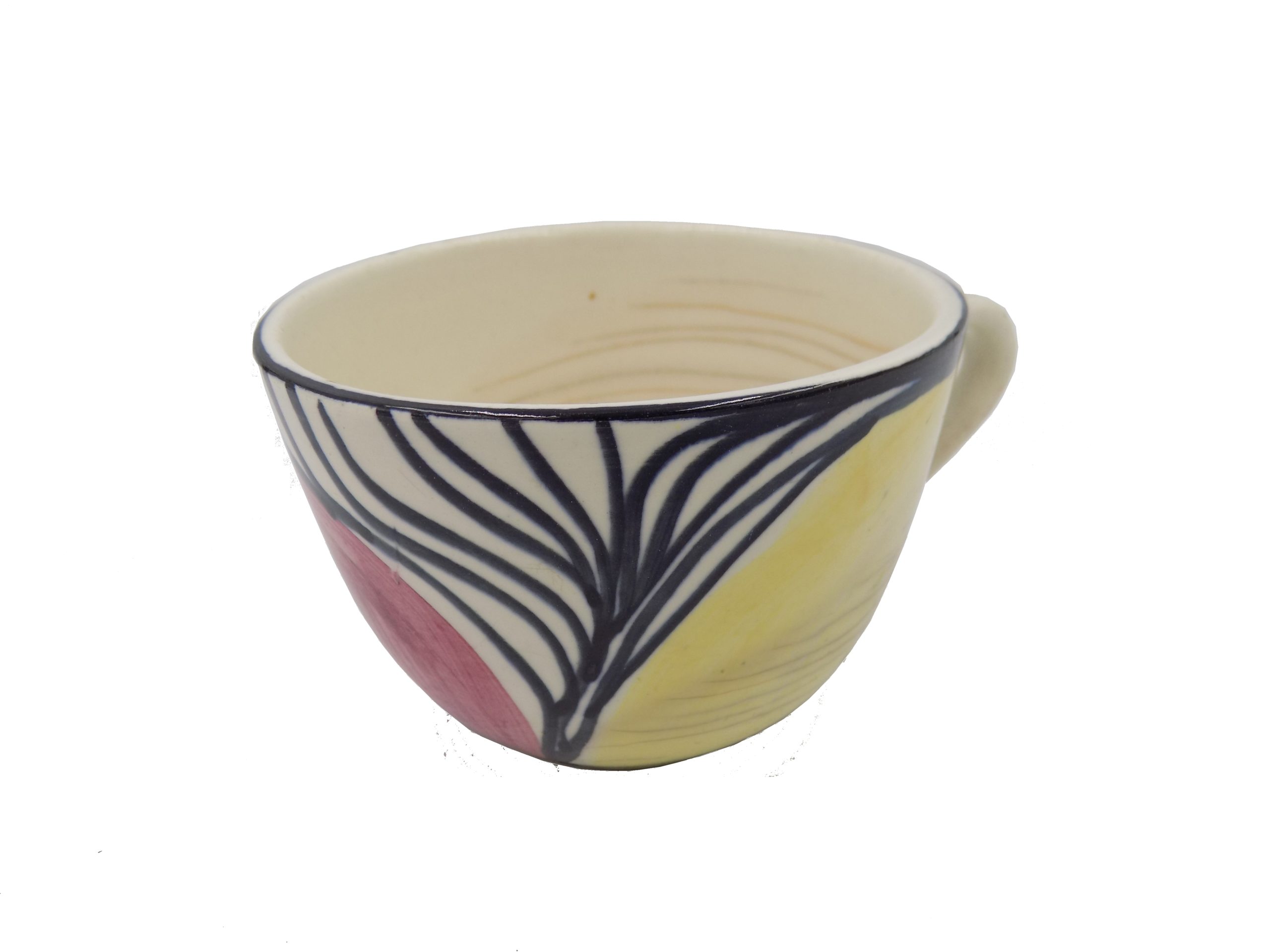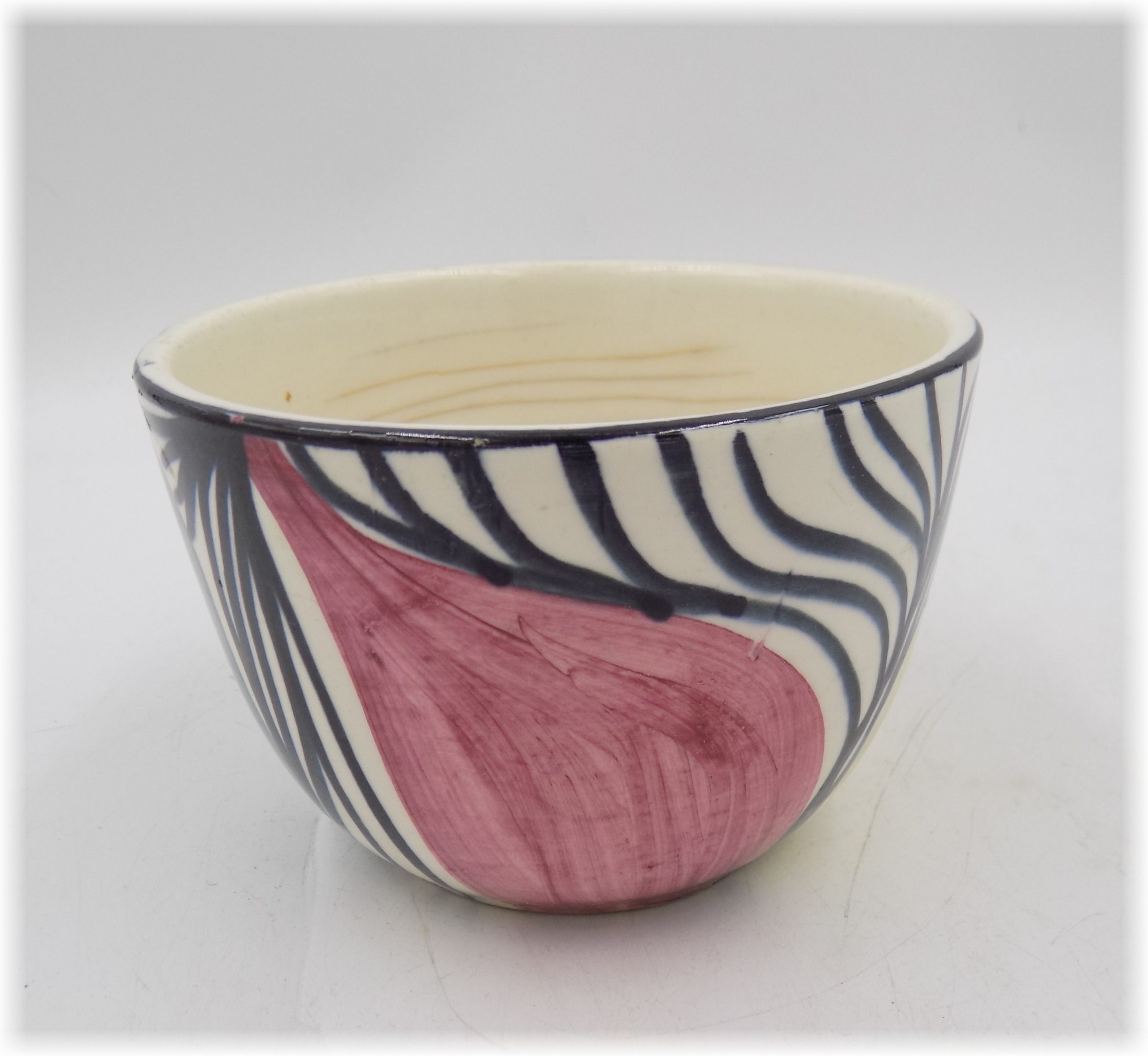 Fajansowa filiżanka z laat 50/60-tych. Sygnowana. Ręcznie malowana. Wymiary; wys.6 x 9 cm. Przebarwienie i widoczny harys.