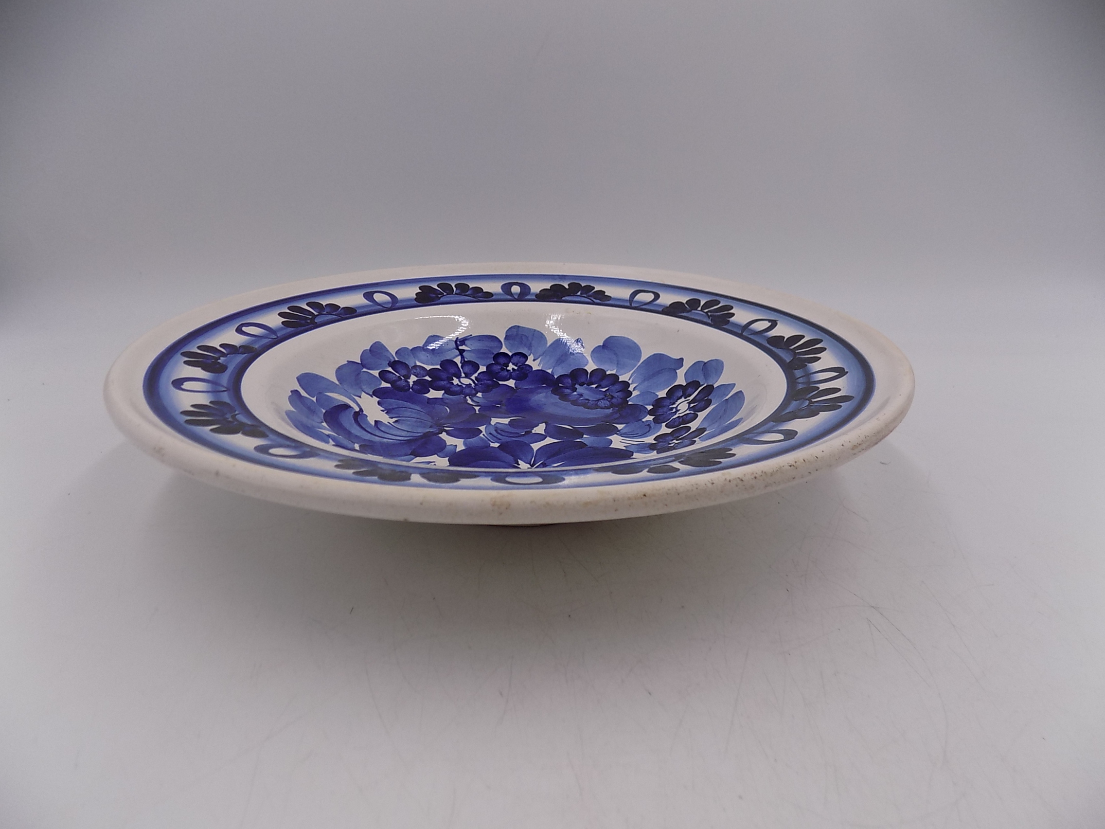Fajansowa patera dekoracyjna KUJAWY z Włocławka z lat 70/80-tych. Sygnowana. Ręcznie malowana przez Janinę Hosa. Wzór 1281 zarejestrowany powtórnie w 1974 roku. Projekt przypisany EPB. Wymiary; 6 x 29 cm