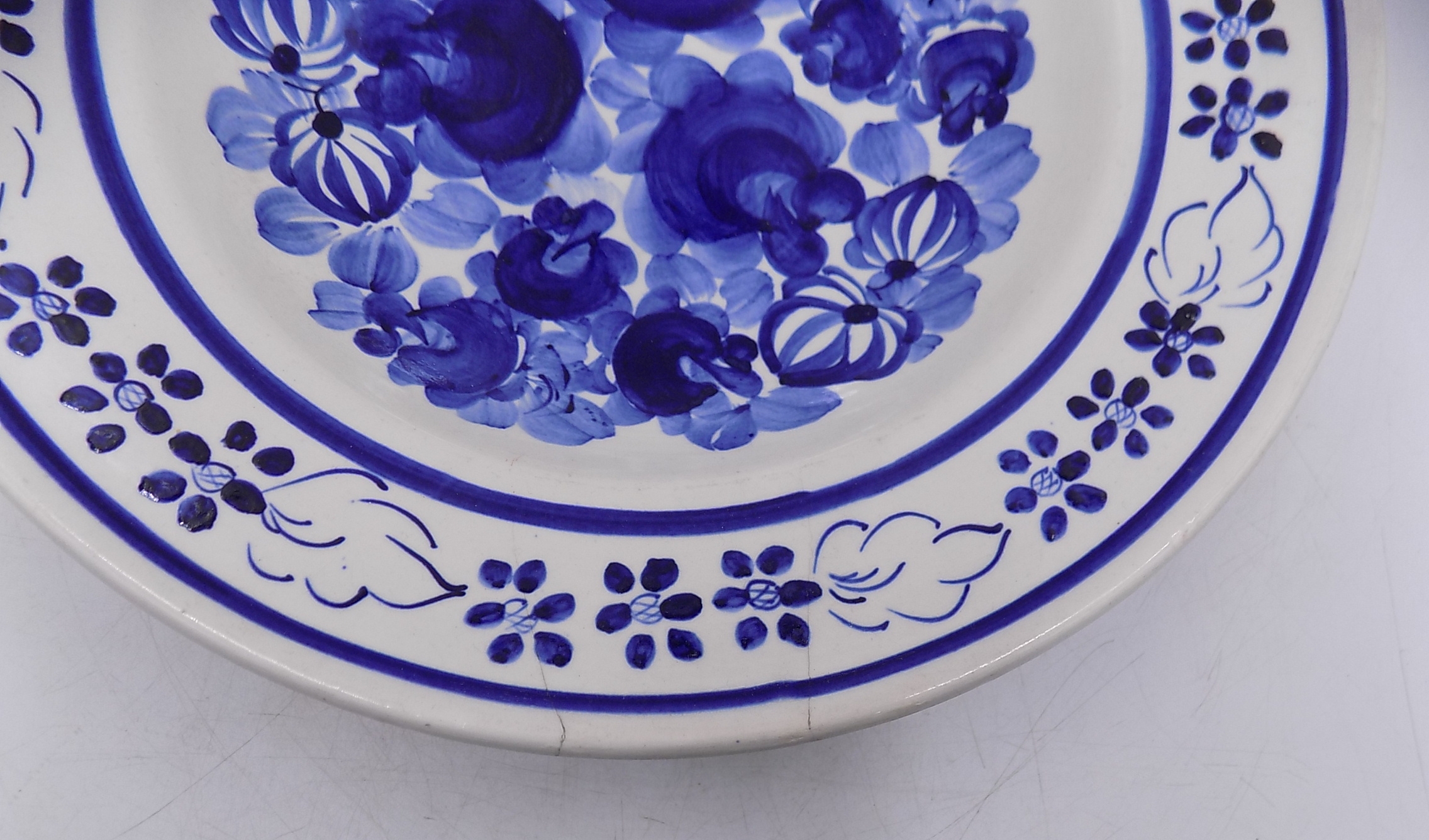 Fajansowa patera dekoracyjna z Włocławka z lat 70/80-tych. Sygnowana. Ręcznie malowana. Wzór 1281 zarejestrowany powtórnie w 1974 roku. Projekt patery KUJAWY został przypisany EPB. Wada pokazana na zdjęciach. Wymiary; 6 x 29 cm.