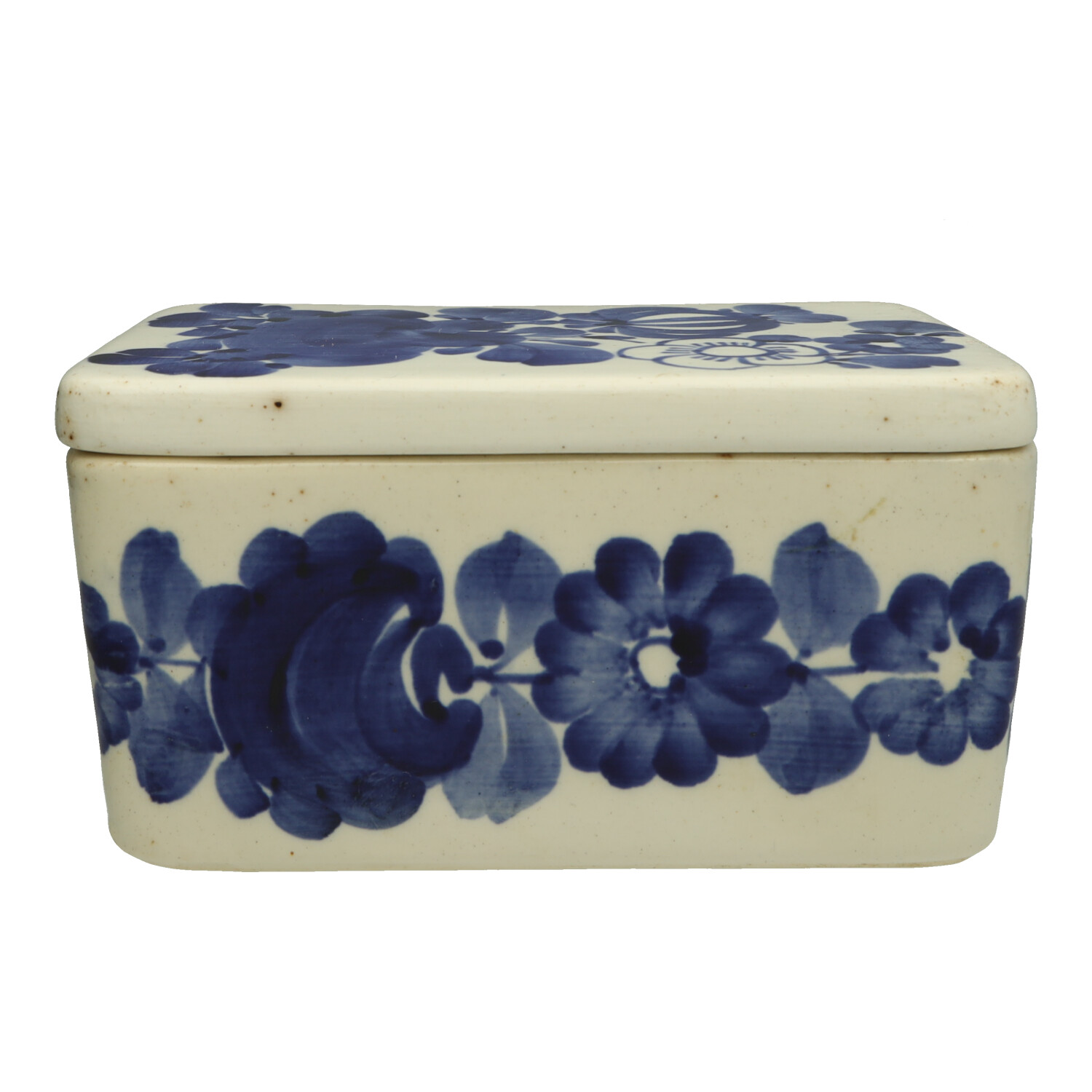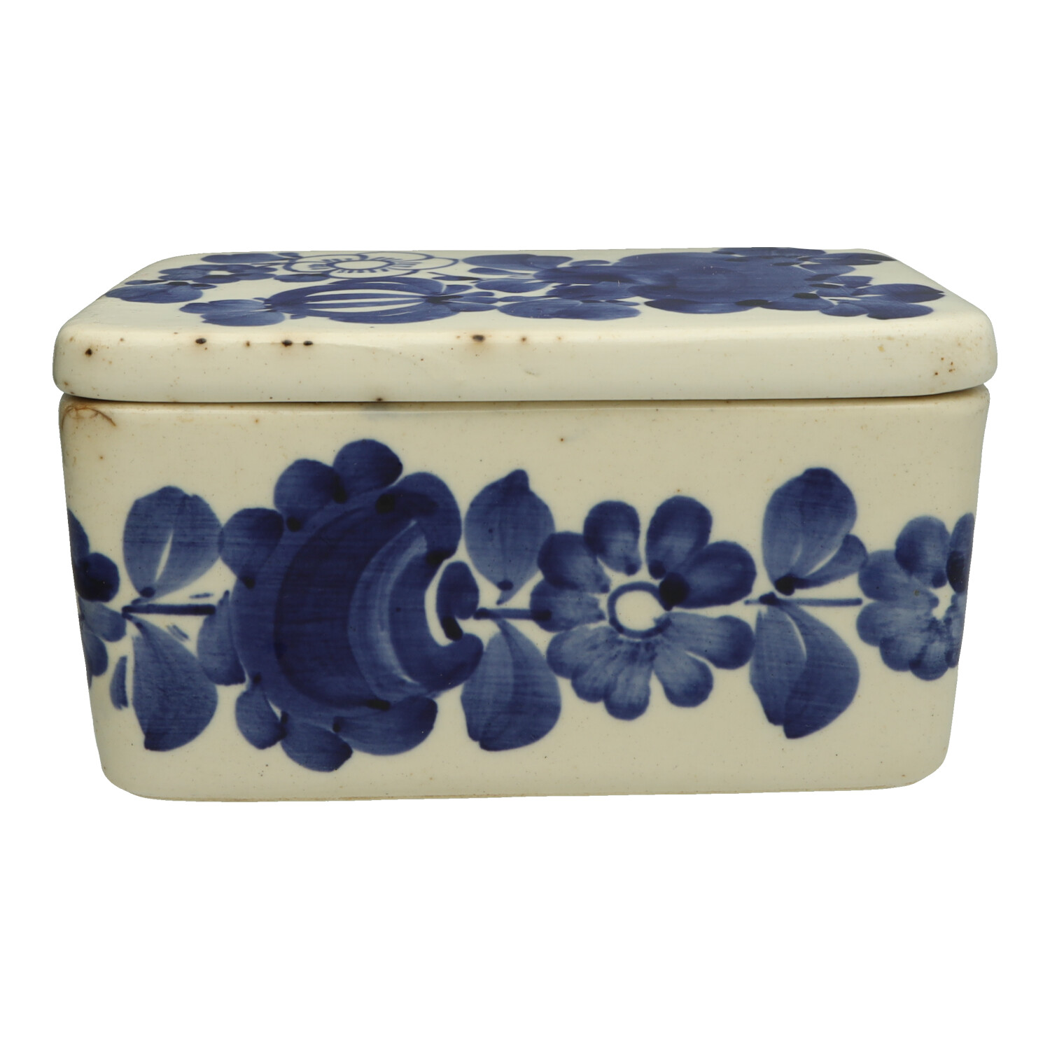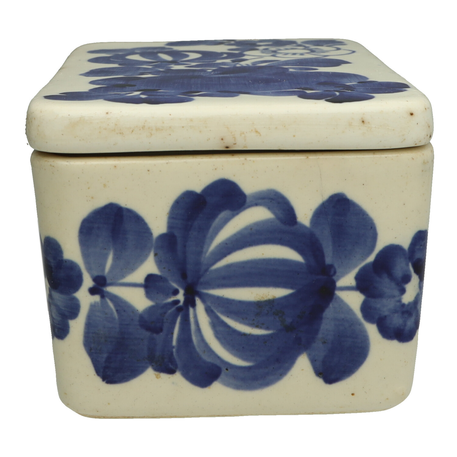 Fajansowa szkatułka z Włocławka z lat 70/80-tych. Sygnowana. Ręcznie malowana. Wzór 1062 zatwierdzony w 1969 roku. Projekt Wit Płażewski. Wymiary; wys.6,5 x 13 x 8,5 cm. /O.
