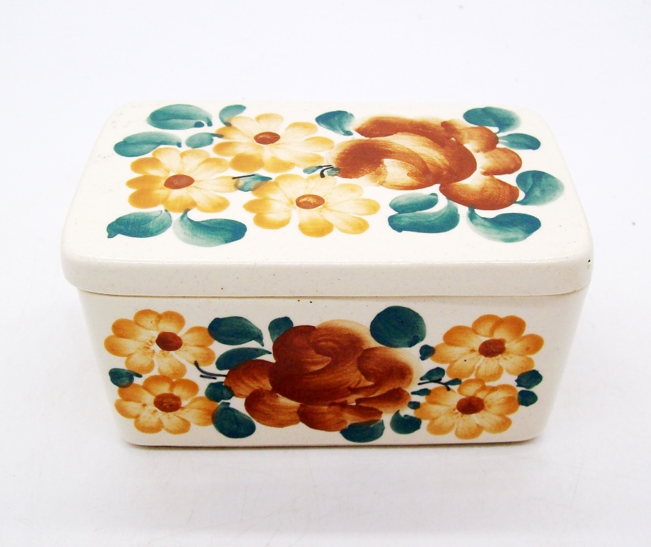 FAJANS Włocławek lata 70/80-te SZKATUŁKA, Wzór 1062 zatwierdzony w 1969 r. Projekt Wit Płażewski hand painted – ręcznie malowane