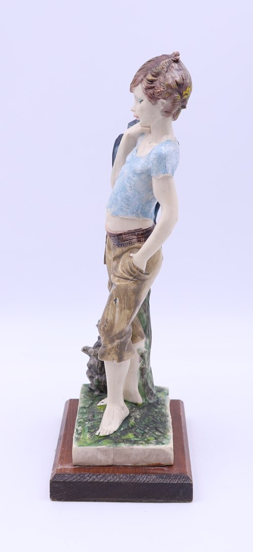 Wnieś do swojego wnętrza niepowtarzalny urok i elegancję dzięki naszej wyjątkowej figurce - "Chłopiec z kurtką w ręku i psem ITALY". To prawdziwe dzieło sztuki, które odzwierciedla piękno i finezję porcelany z drugiej połowy XX wieku.