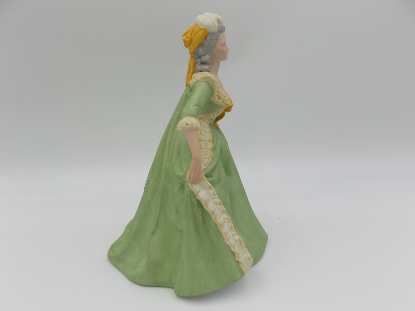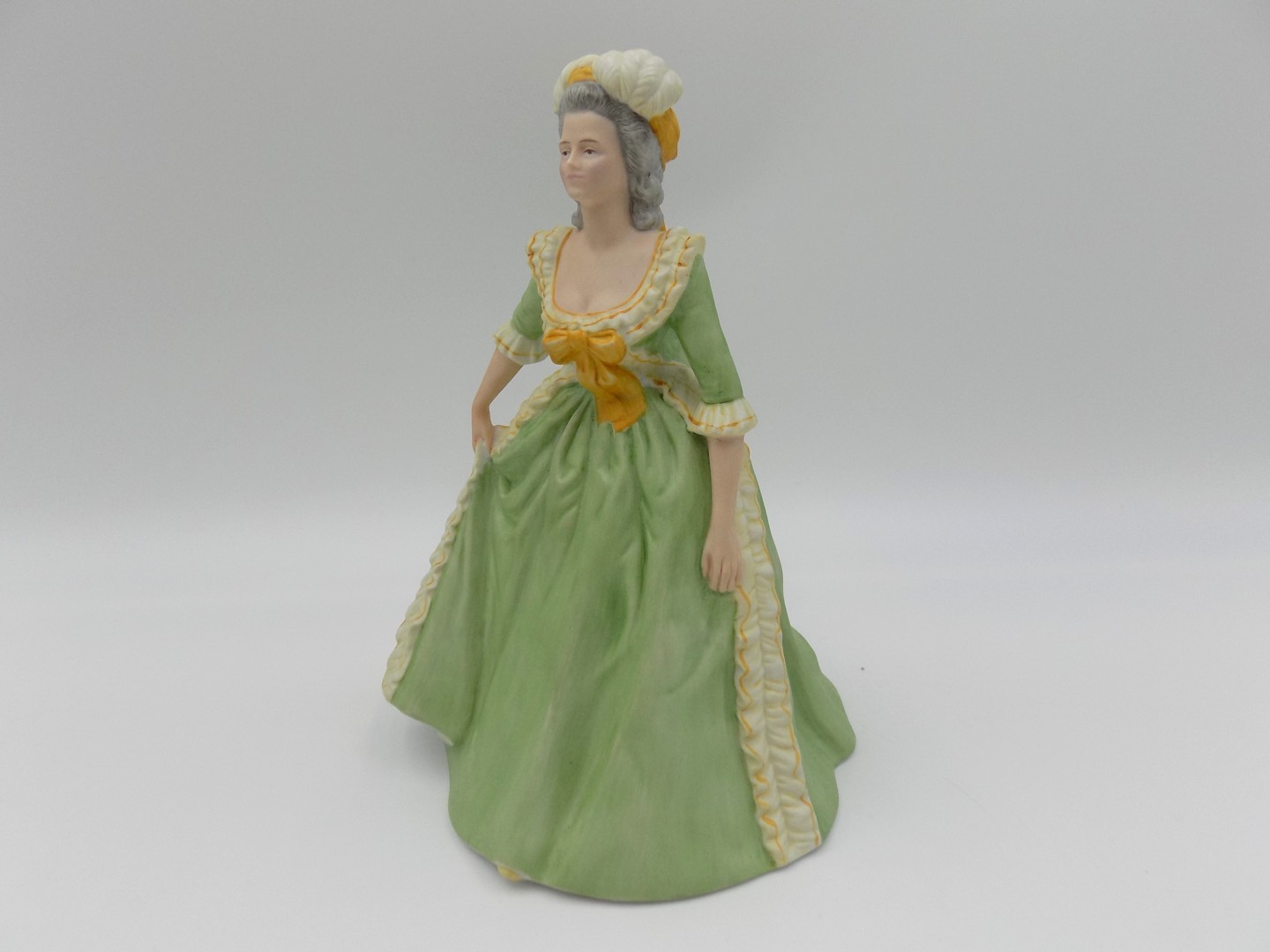 Produkt ekskluzywny - porcelanowa figurka "MARIE ANTOINETTE", stworzona przez renomowaną manufakturę Franklin Porcelain w 1982 roku. Ta wyjątkowa i pięknie wykonana figurka przenosi nas w czasie do epoki dawnych monarchii, przedstawiając w bardzo realistyczny sposób postać samej Marii Antoniny.
