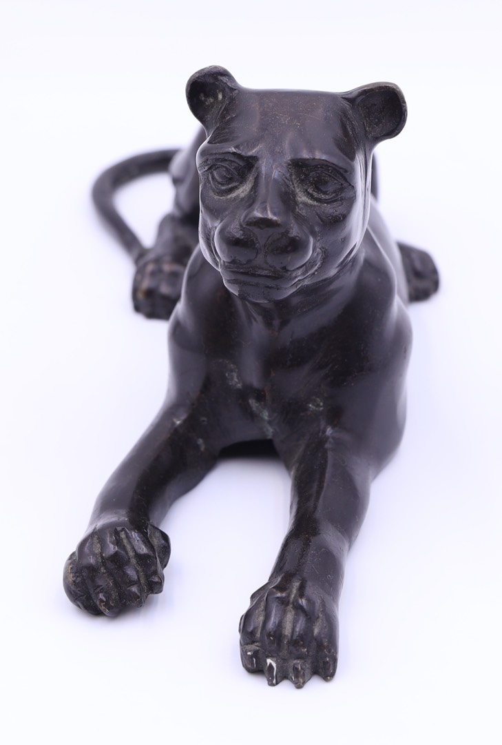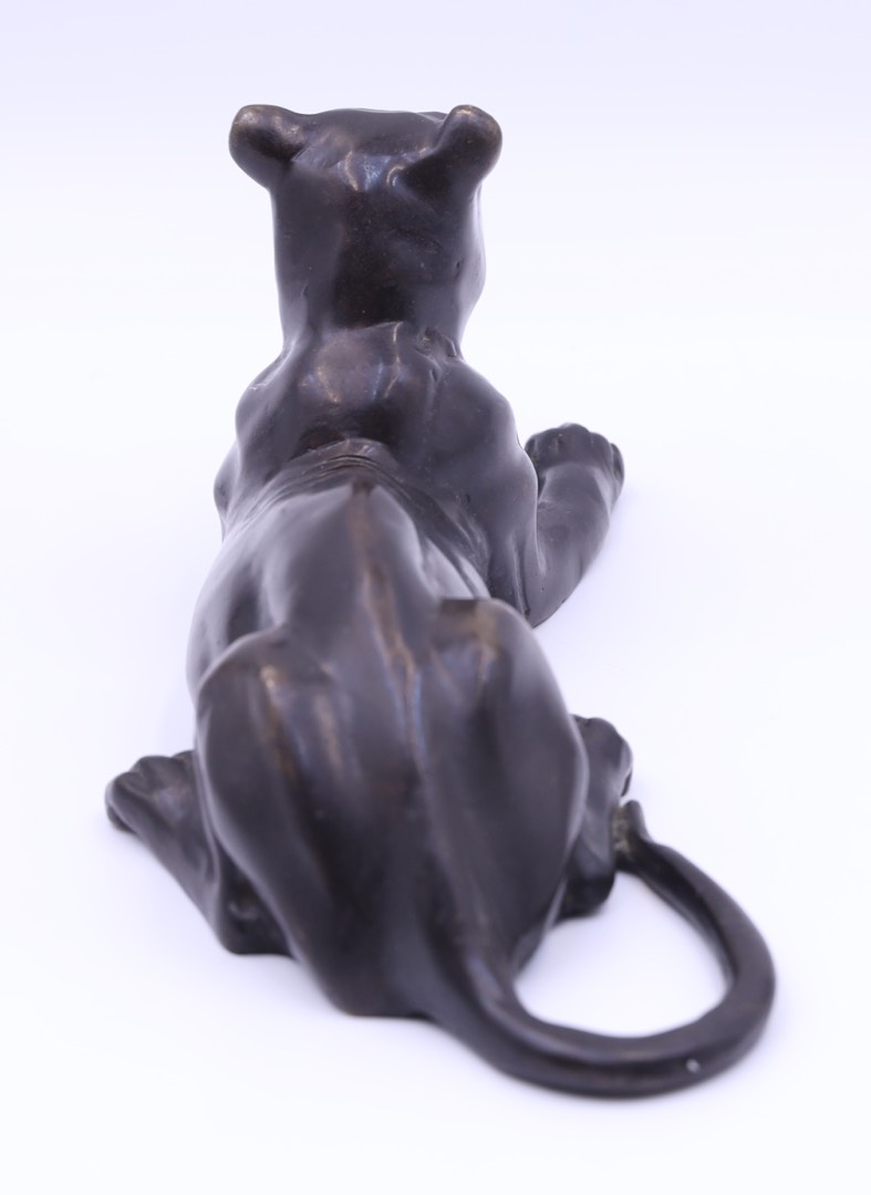 Wyjątkowa figurka PUMA wykonana z brązu - unikalny zabytek dziedzictwa artystycznego, który nie tylko ukazuje piękno brązu, ale także przenosi nas w czasie do pierwszej połowy XX wieku. Ta misternie wykonana figurka pumy jest nie tylko wspaniałym przykładem kunsztu artystycznego tamtej epoki, ale także cenną ozdobą, która ożywi każde wnętrze.