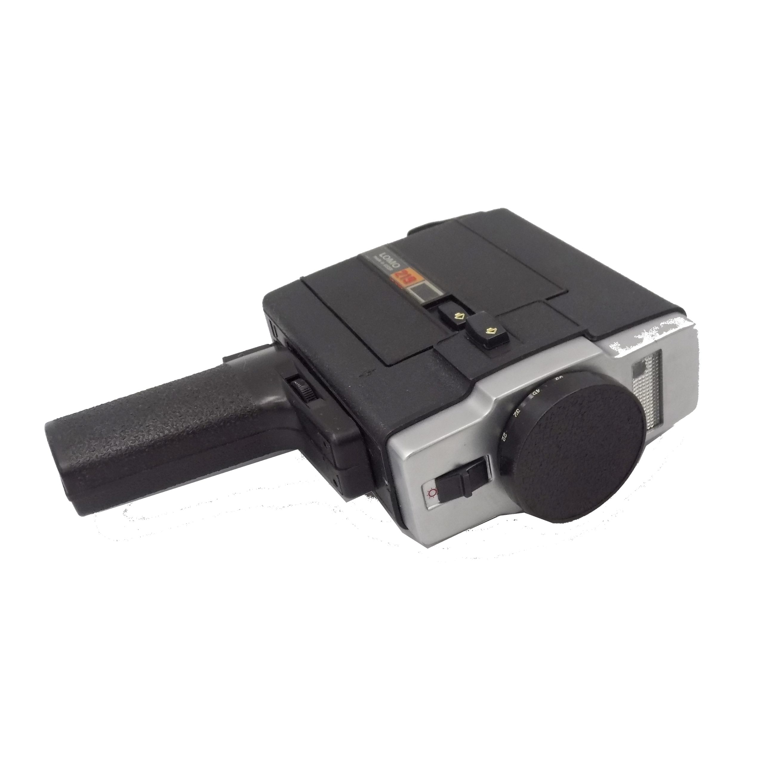 Kamera LOMO 219 z wyposażeniem i etui. Wymiary; kamera 12 x 16 x 5 cm, etui 22 x 24 x 7,5 cm.