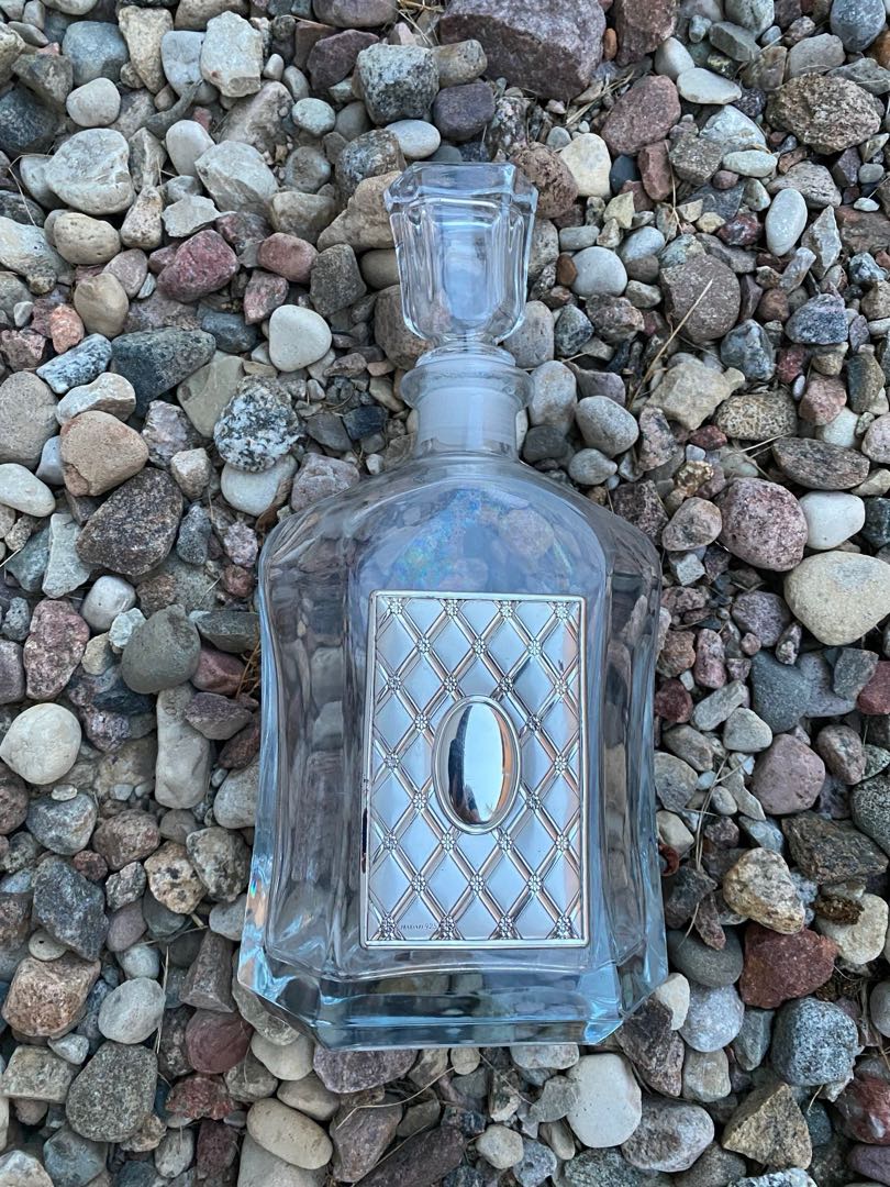 Każdy szczegół tej karafki emanuje elegancją. Kryształowy korpus, uzupełniony misternie zdobionymi srebrnymi elementami, tworzy dzieło sztuki, które przyciąga wzrok i podkreśla wyjątkowy gust właściciela.