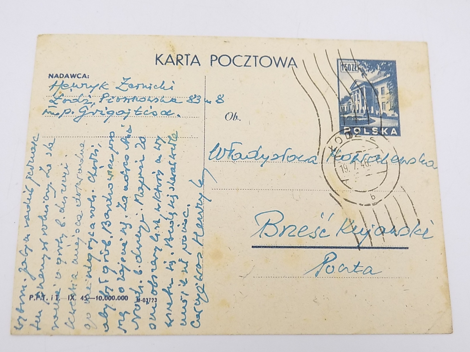 Karta pocztowa ŁÓDŹ 1946