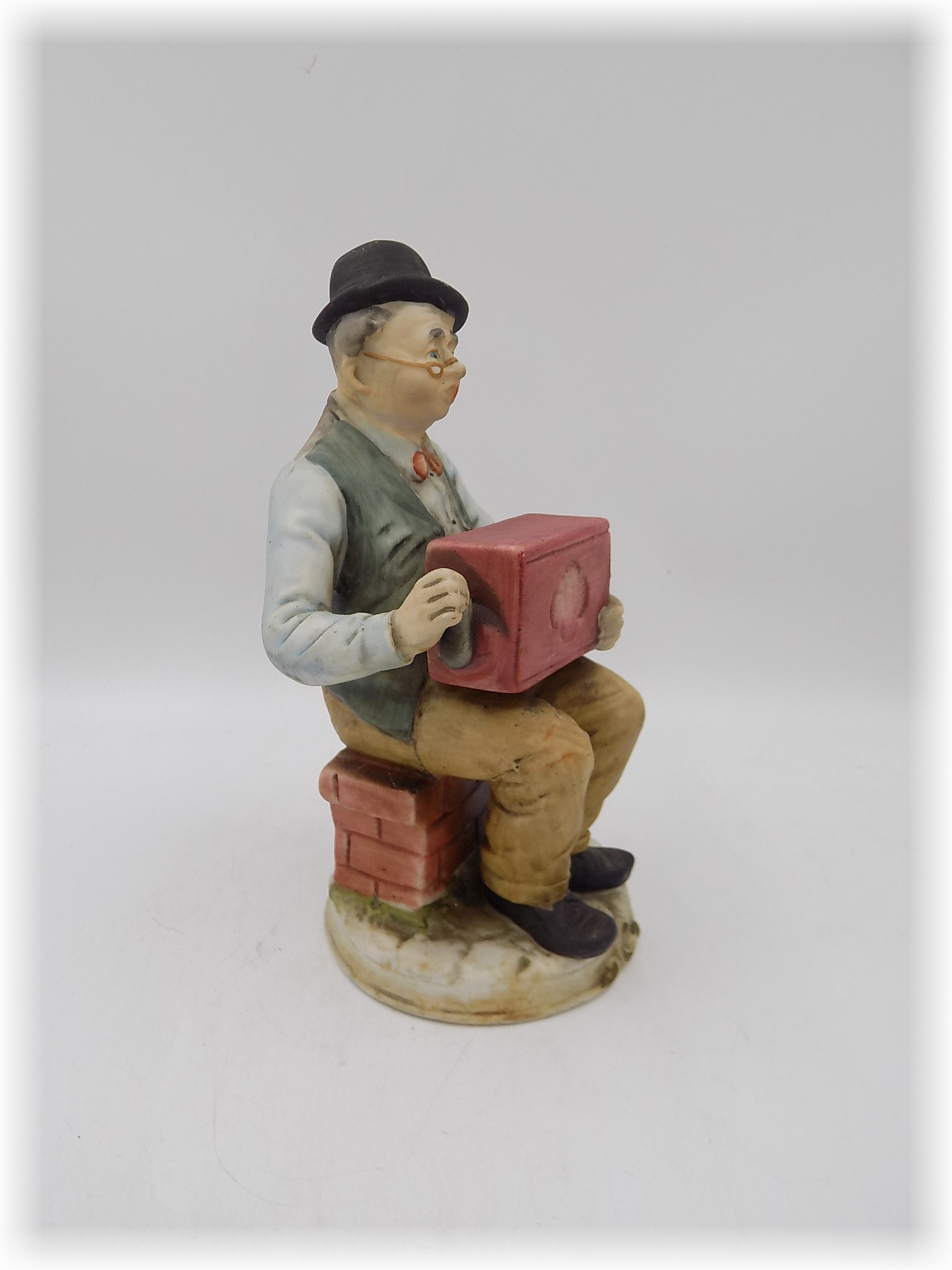 Ceramiczna figura przedstawiająca kataryniarza prawdopodobnie z II poł.XX w. Wymiary; 19 x 9 cm.