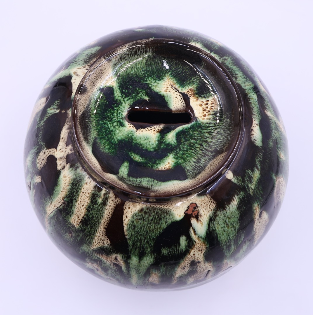 Niezwykła historia tej skarbonki odbija się w widocznych fragmentach niedolanej glazury. To świadectwo procesu twórczego, które dodaje jej autentycznego piękna i głębokiego znaczenia. Każdy ten fragment jest jak opowieść, która ukazuje zaangażowanie i pasję artysty.