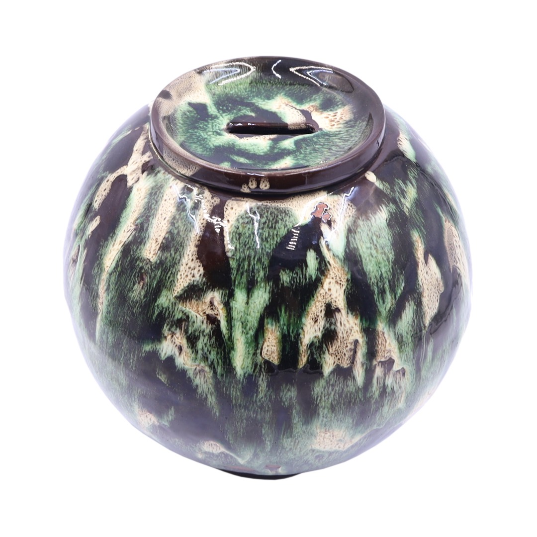 Skarbonka została zrealizowana z użyciem czerwonej glinki, surowca, który stanowi swoistą kopalnię możliwości dla rękodzielników. Jej powierzchnia została starannie pokryta nietuzinkową glazurą, dodającą jej unikalny, artystyczny charakter. Ta wyjątkowa kombinacja materiałów i technik tworzy efekt wizualny, który od razu przykuwa uwagę i wywołuje zachwyt.