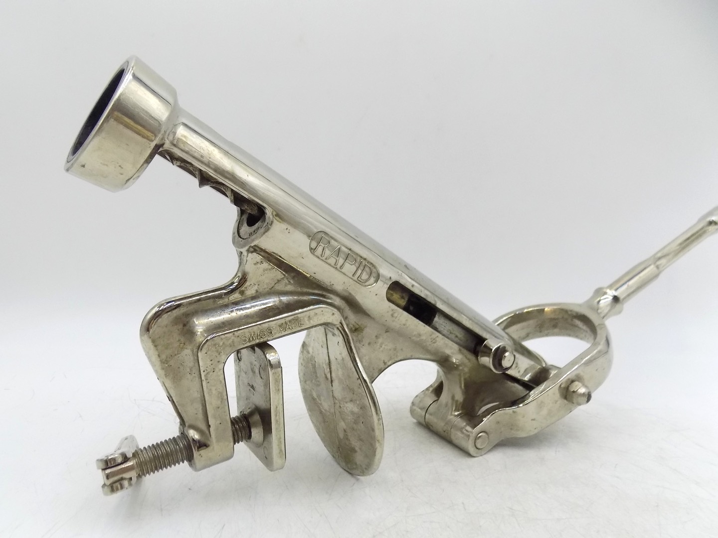 Z przyjemnością prezentujemy korkociąg szwajcarskiej marki RAPID - niezwykłe i oryginalne akcesorium dla miłośników wina i kolekcjonerów rzadkich artefaktów. Ten gigantyczny korkociąg o ponadczasowym designie jest doskonałym przykładem innowacyjnej technologii i elegancji, która zachwyci każdego entuzjastę wina.