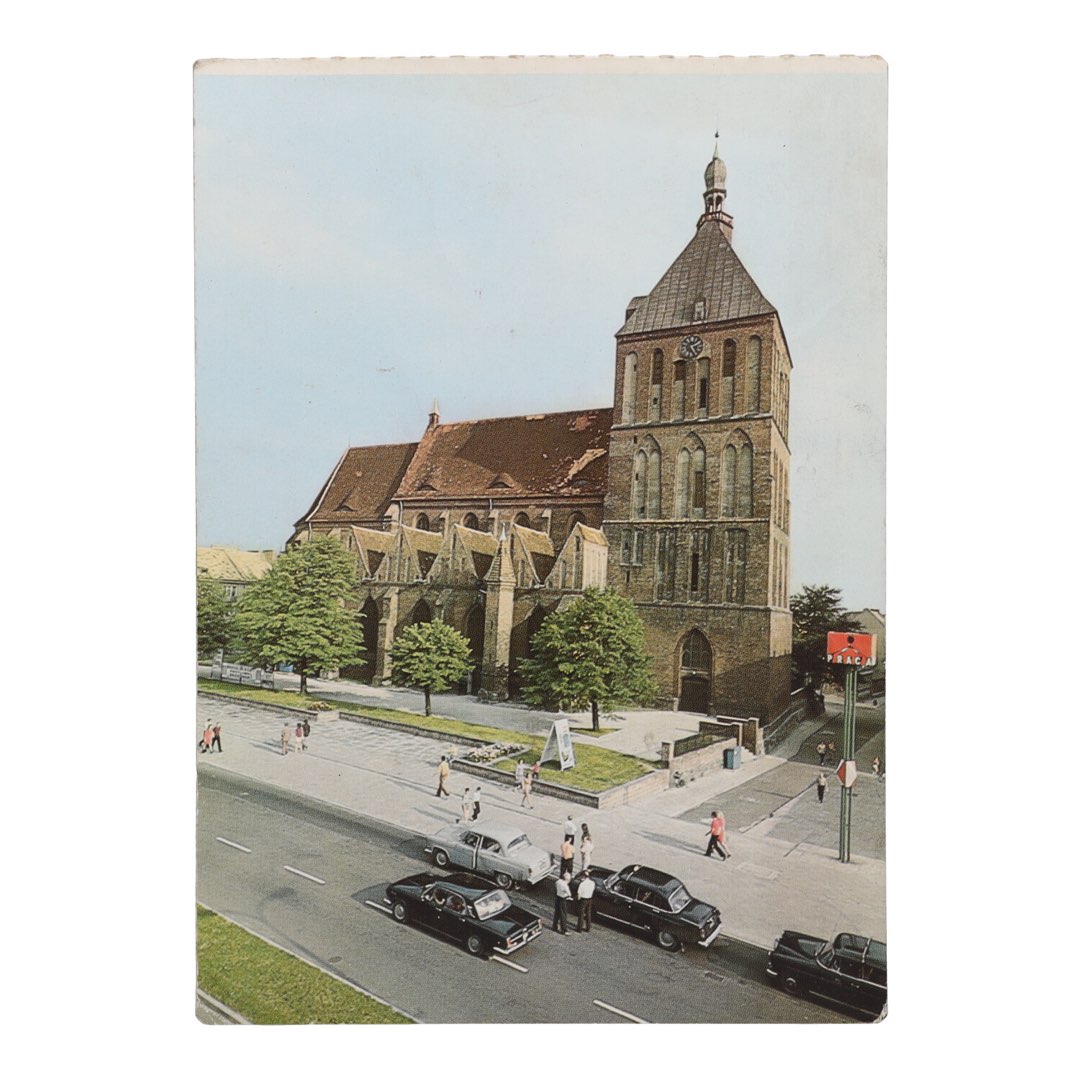 Pocztówka przedstawia majestatyczny gotycki kościół z XIV wieku, emanujący historią i pięknem. To nie tylko zdjęcie, to kawałek dziedzictwa kulturowego Koszalina, który można podziwiać i dzielić się nim z innymi.