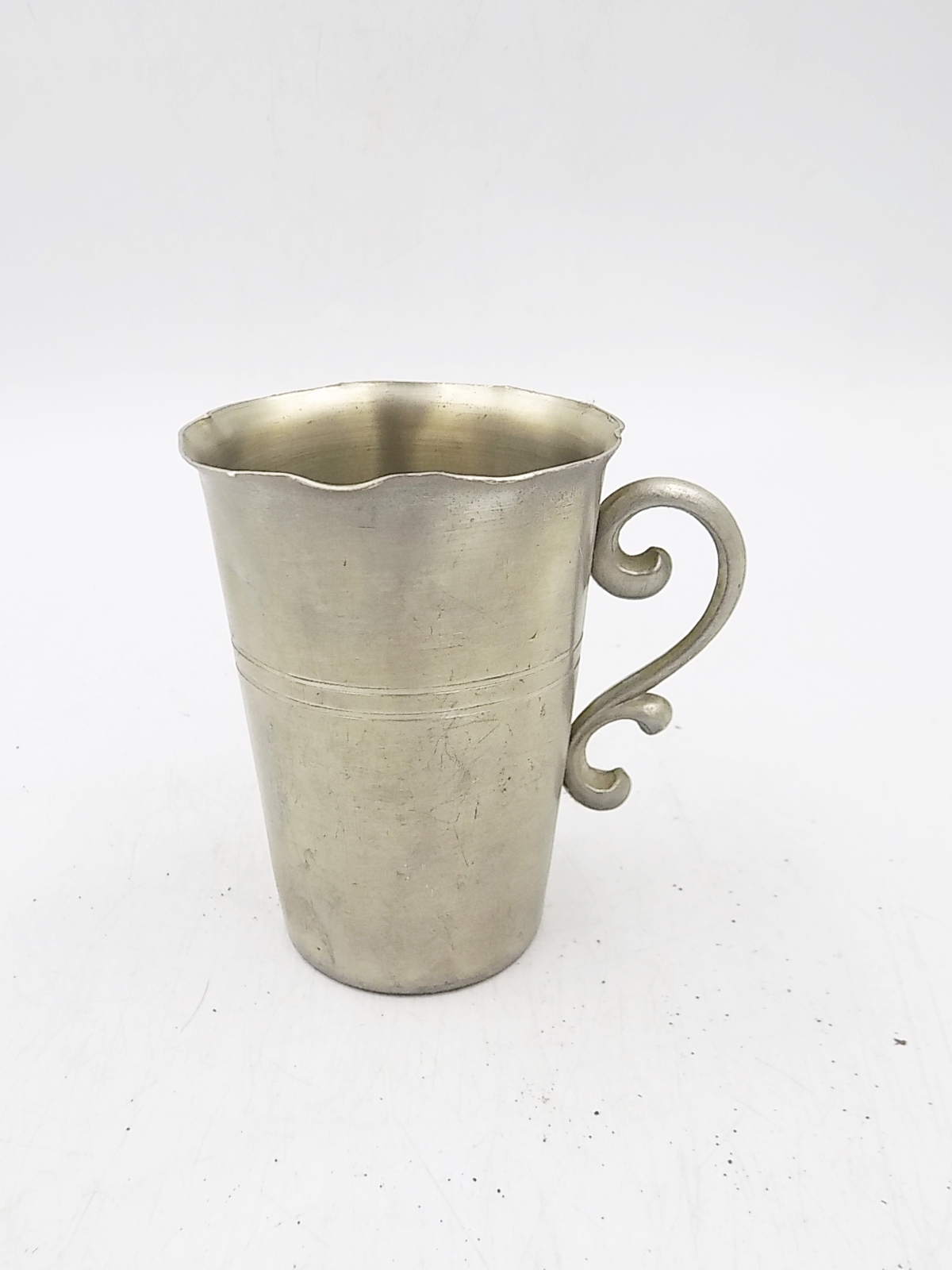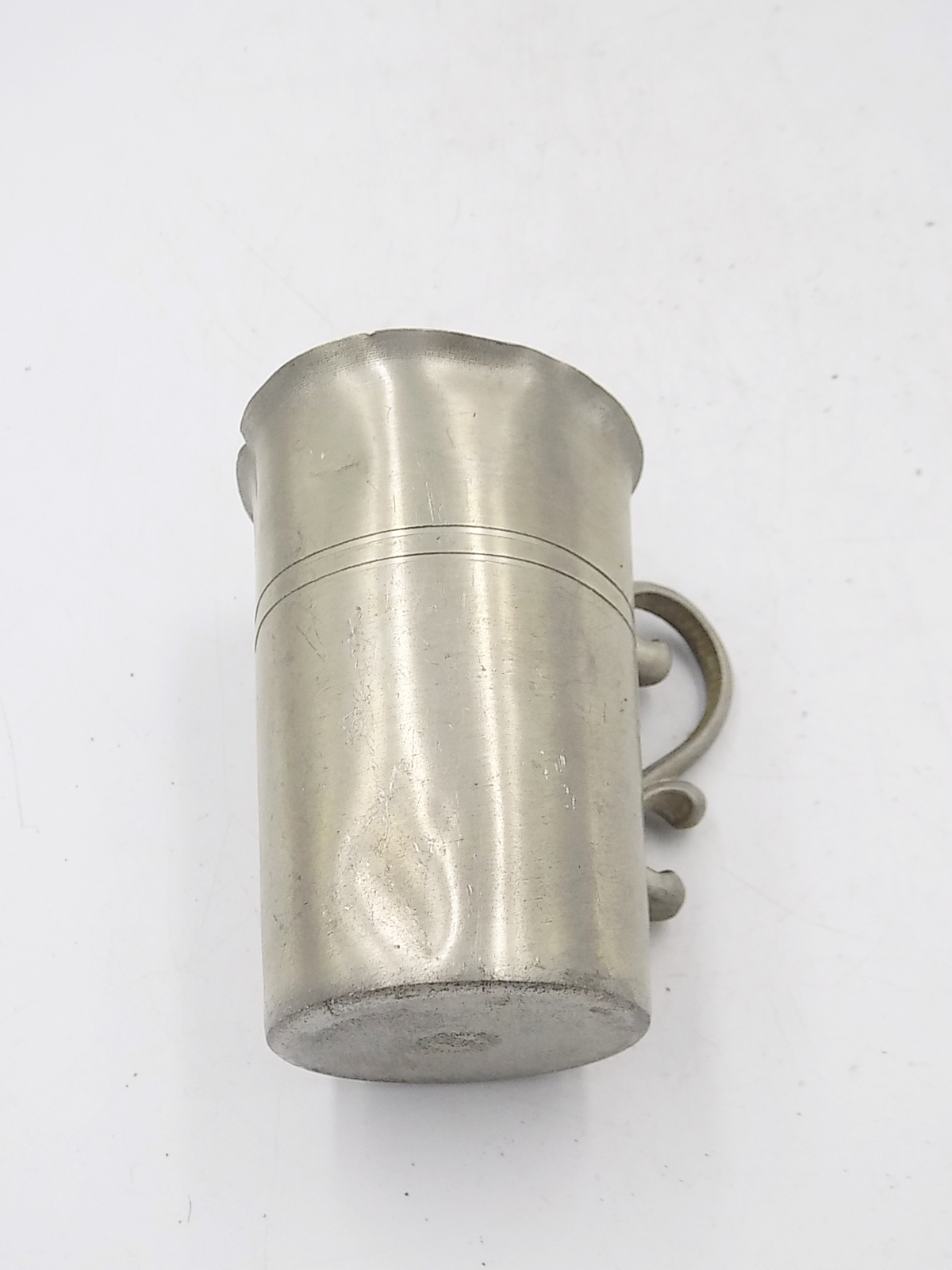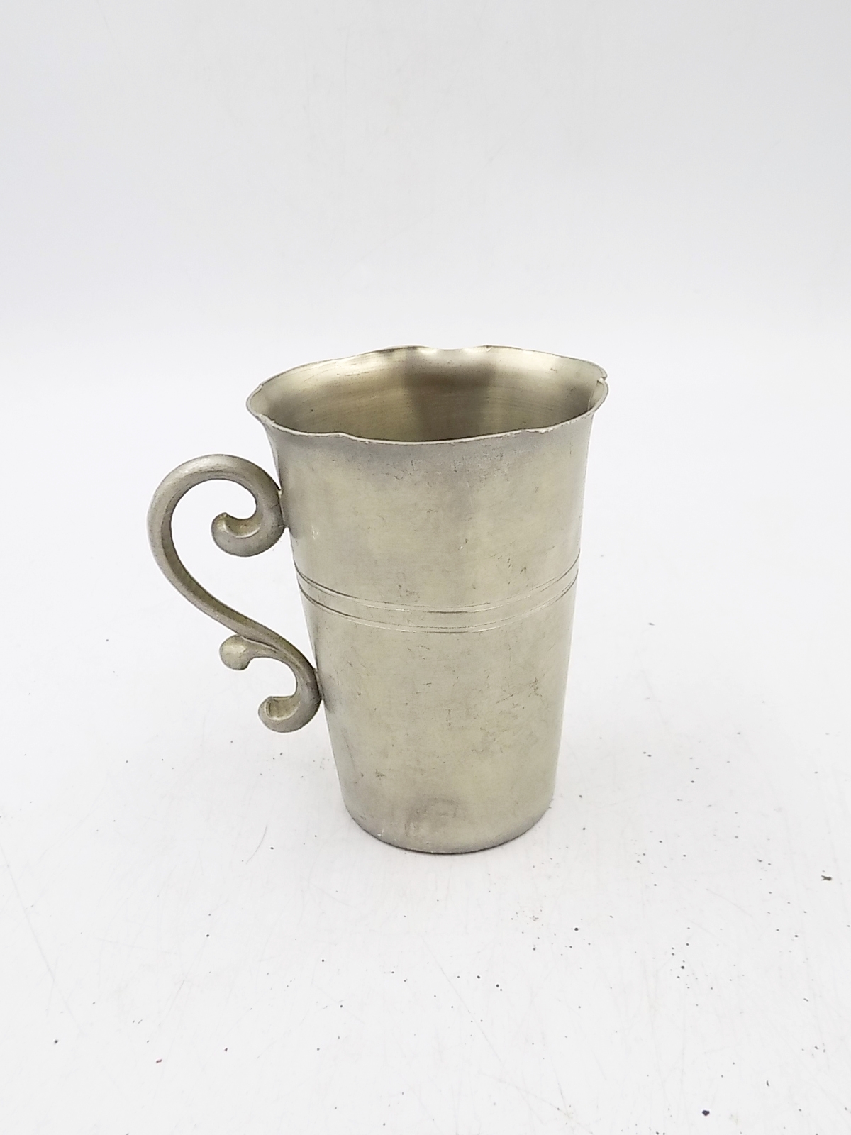 Kubek z cyny. Sygnowany. Wymiary; wys.9,5 x 7 cm.