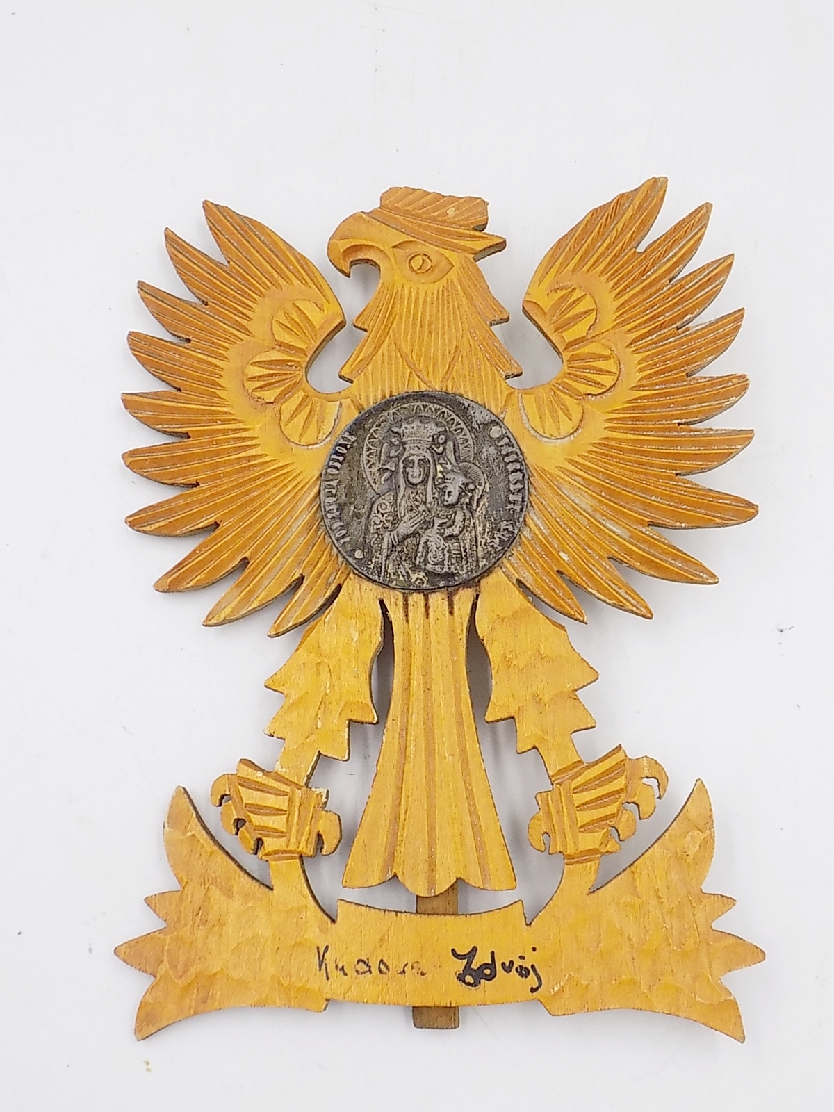 Pamiątka patriotyczna z Kudowy Zdrój z lat 40-tych. Wymiary; 16,5 x 13 cm.
