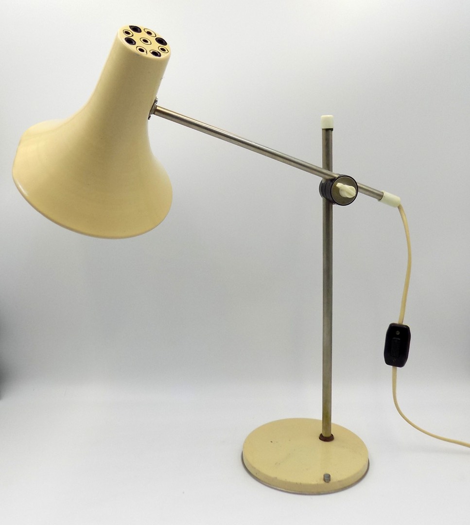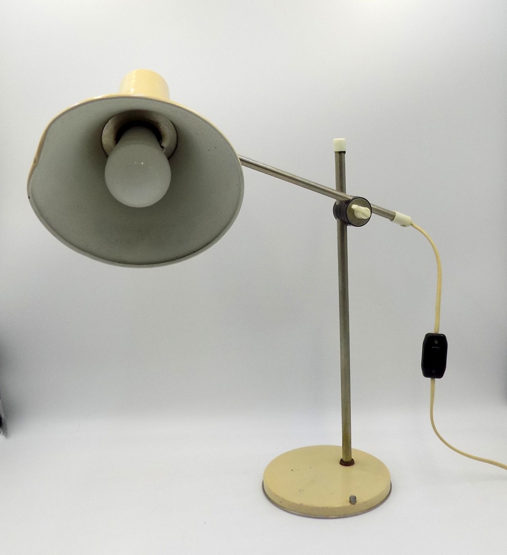 Wyjątkowy i klimatyczny przedmiot z historii - lampa biurowa z renomowanej manufaktury Polam Wilkasy, pochodząca z czasów PRL. To niezwykłe źródło światła nie tylko oświetli Twoją przestrzeń, ale także wniesie do niej niepowtarzalny akcent retro, oddając ducha minionych lat.