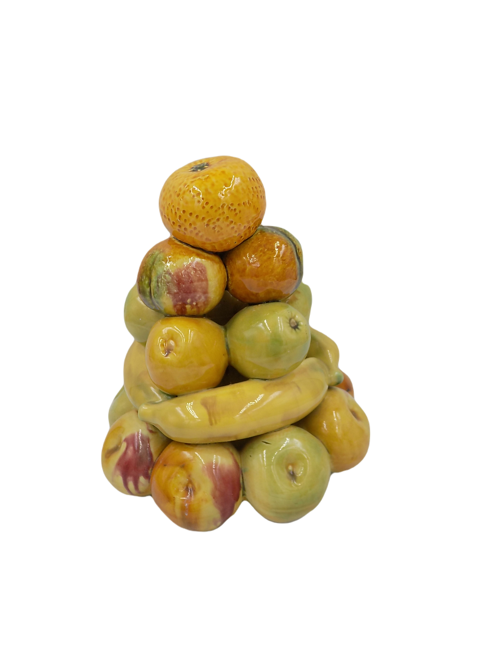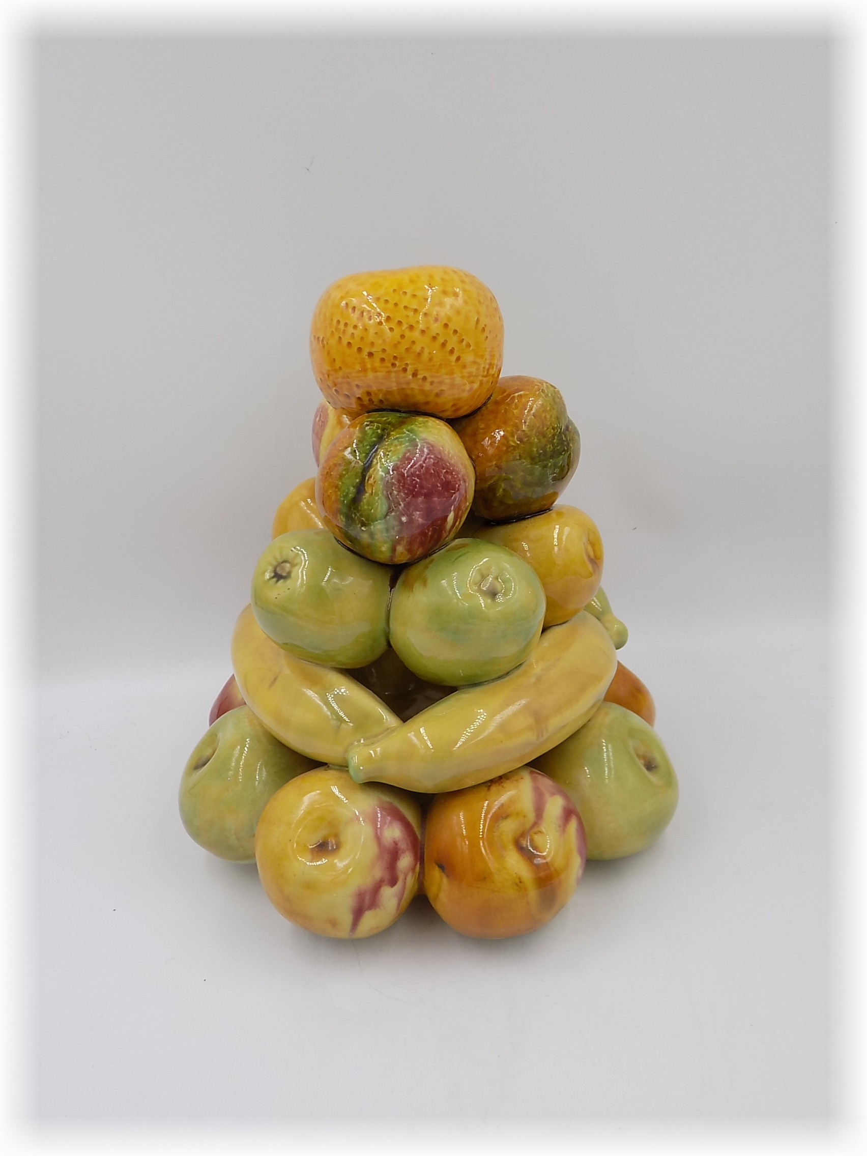 Majolikowa piramida z owoców z Portugalii z II poł.XX w. Sygnowana. Wymiary; wys.24 x 19 cm