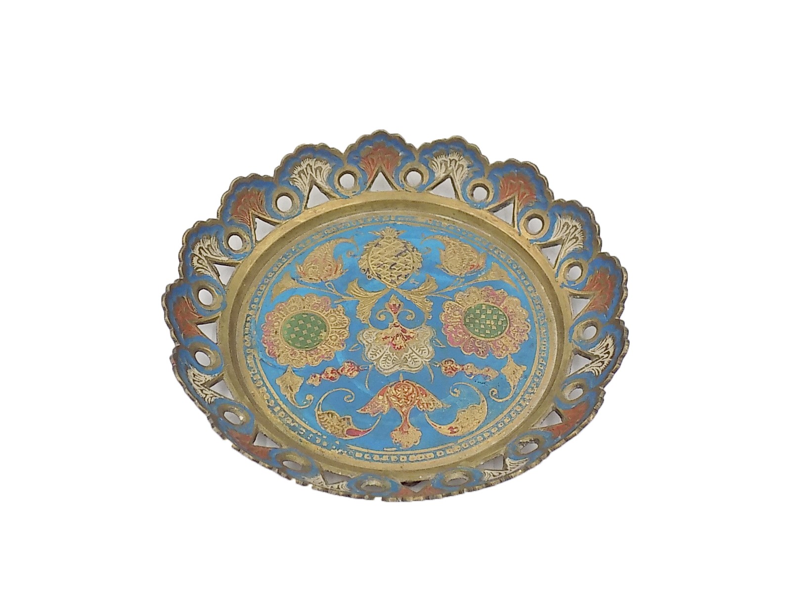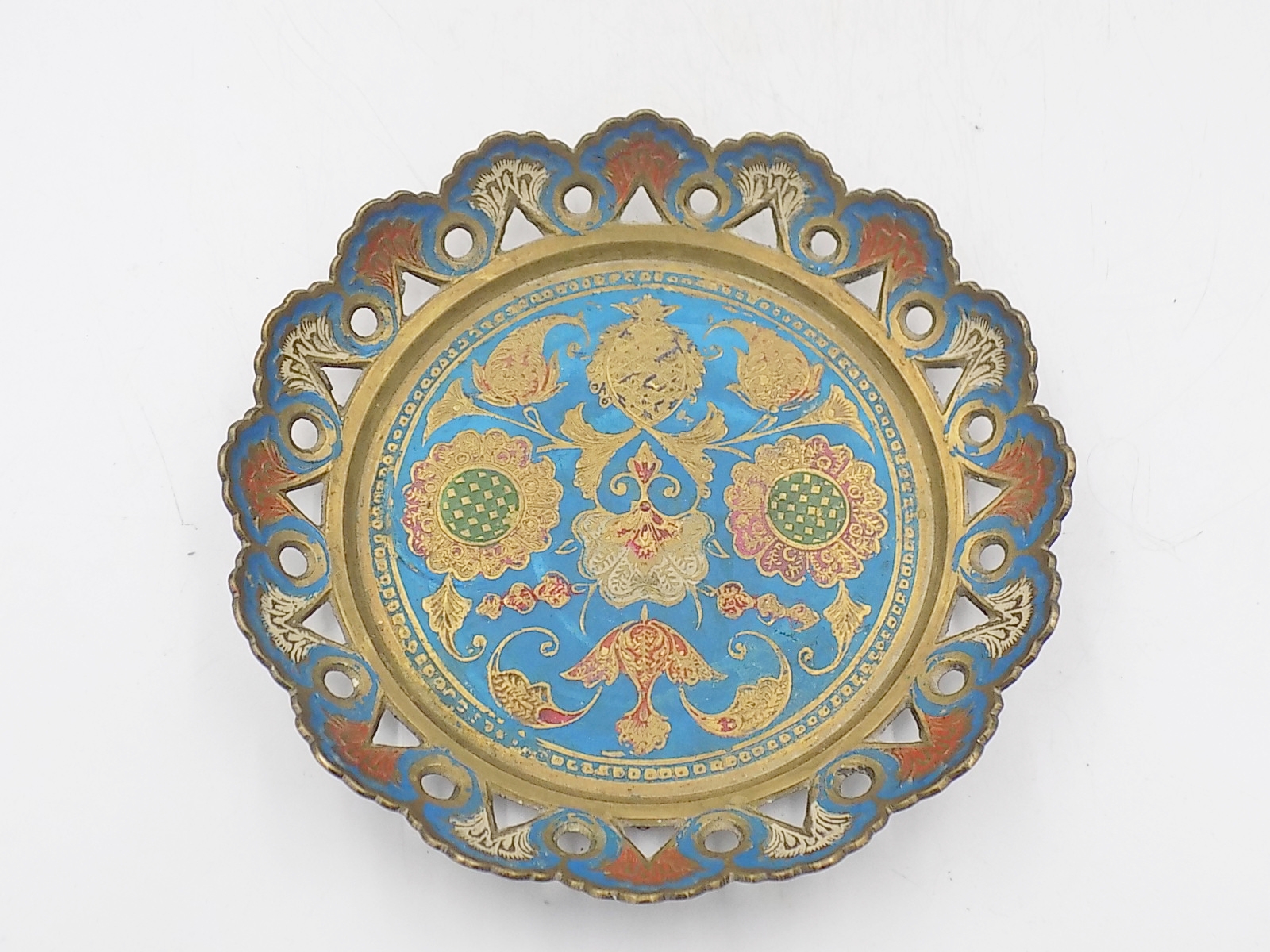 Emaliowana miseczka z mosiądzu z II poł.XX w. Pochodzenie Indie. Wymiary; wys.3 x 17 cm