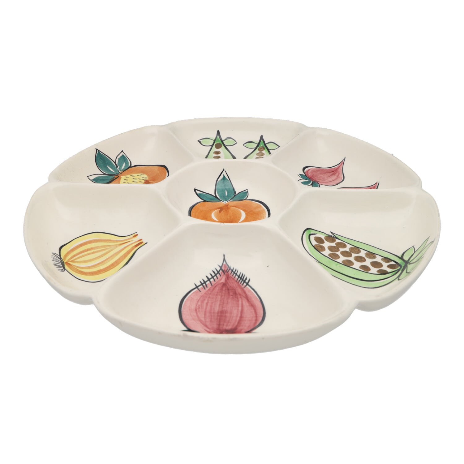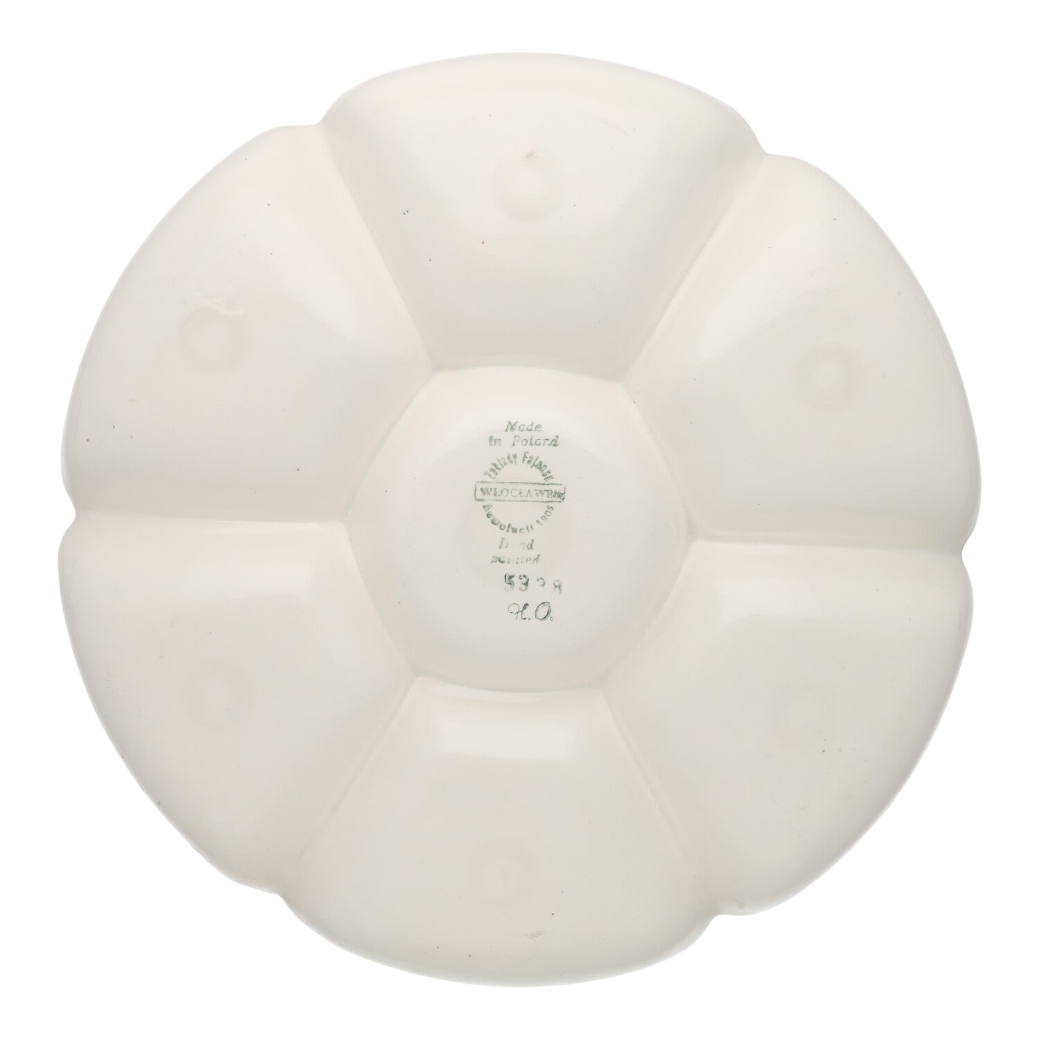 Z przyjemnością prezentujemy wyjątkowe naczynie do przystawek wykonane z fajansu z lat 60-tych, które pochodzi z renomowanej fabryki w Włocławku. Jest to wyjątkowe dzieło sztuki ceramicznej, które zostało stworzone z pasji i umiejętności twórczych. Wyjątkową cechą jest ręczne malowanie, które jest oznaką doskonałości.