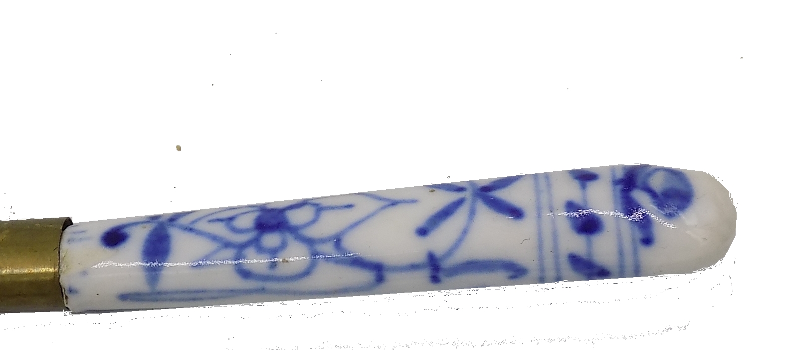 Zabytkowy nożyk do owoców z porcelanową rękojeścią prawdopodobnie z Meissen. Wzór cebulowy. Wymiary; 15,8 cm.