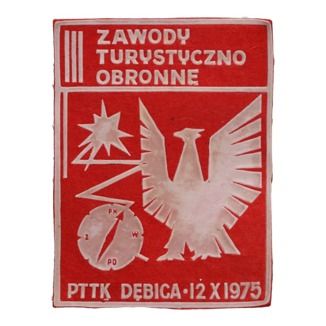Unikalna historia: ta pamiątkowa naszywka to nie tylko ozdoba. To kawałek historii związanej z III Zawodami Turystyczno-Obronnymi w Dębicy w 1975 roku, które odegrały ważną rolę w obronności kraju.