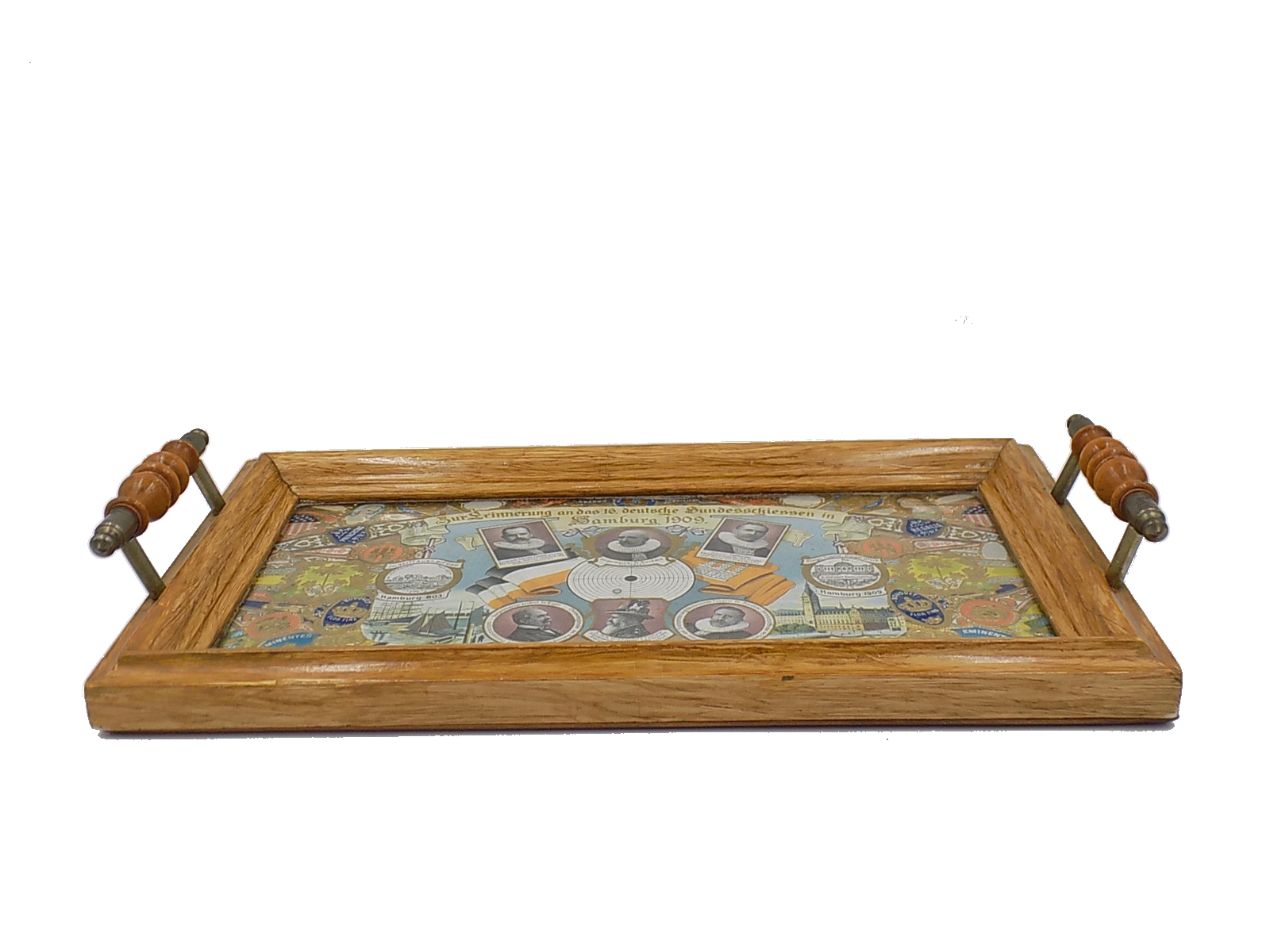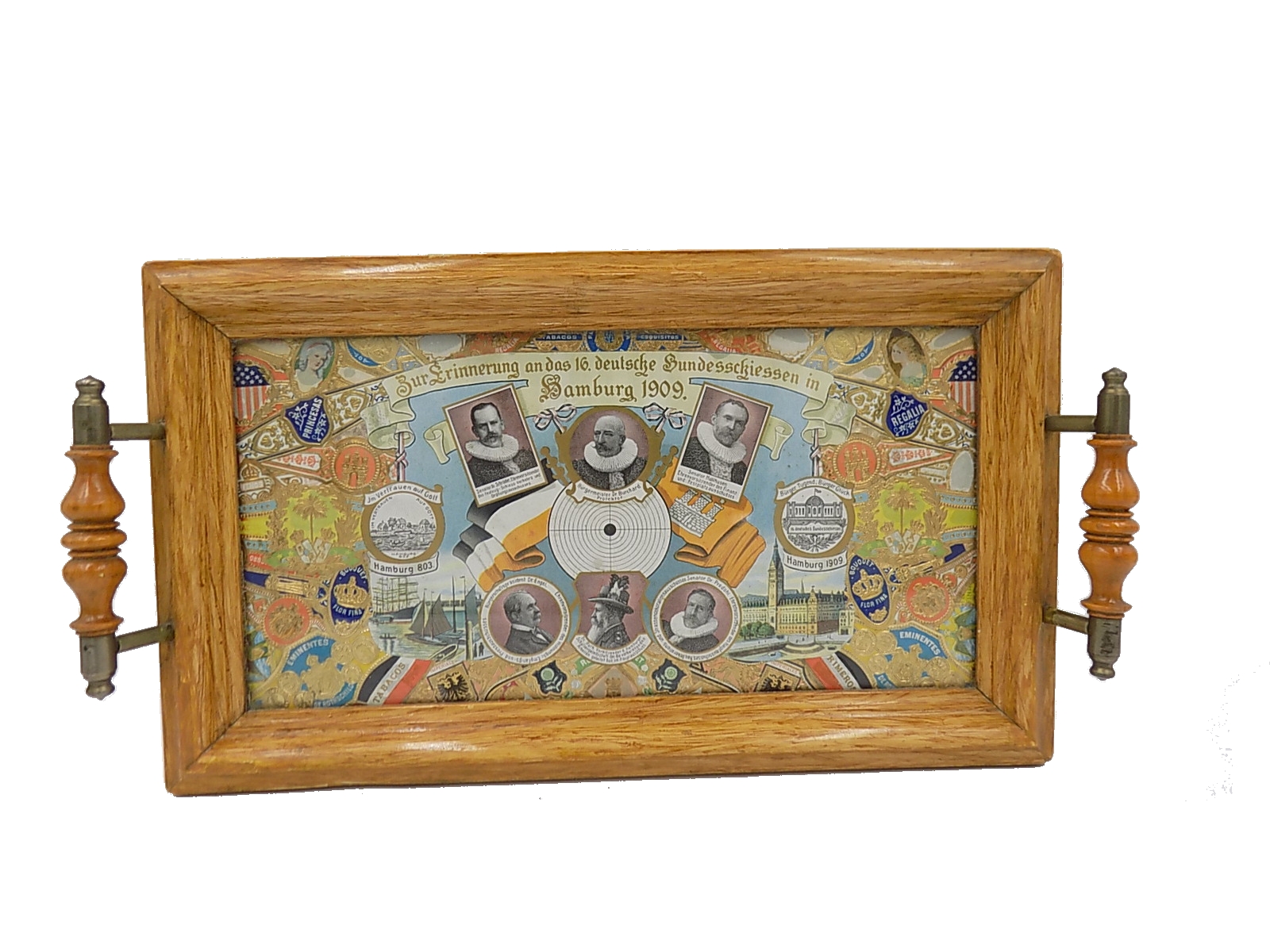 Zabytkowa tacka pamiątkowa od niemieckiego kierownika federalnego z Hamburga z roku 1909. Wymiary; 4 x 30 x 17 cm.