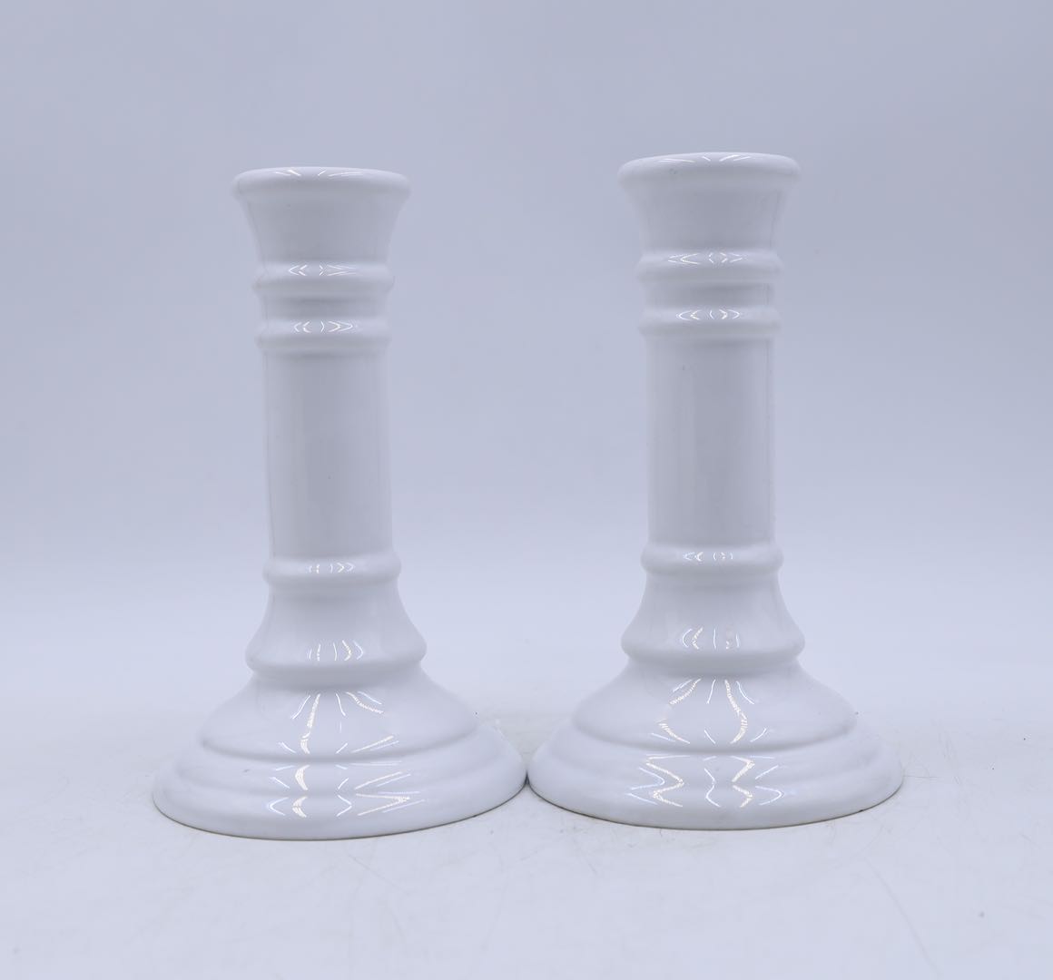 Odkryj elegancję i subtelność z parą świeczników Lattimo, wykonanych z białego szkła, pochodzących z okresu Polskiej Rzeczypospolitej Ludowej (PRL). Ich unikalny design i delikatność wykonania sprawiają, że są one nie tylko przedmiotem użytkowym, ale także prawdziwą ozdobą każdego wnętrza. Wymiary każdego świecznika to 17,5 cm wysokości i 11 cm średnicy, czyli wymiary idealne do stworzenia przytulnej atmosfery w każdym pomieszczeniu.
