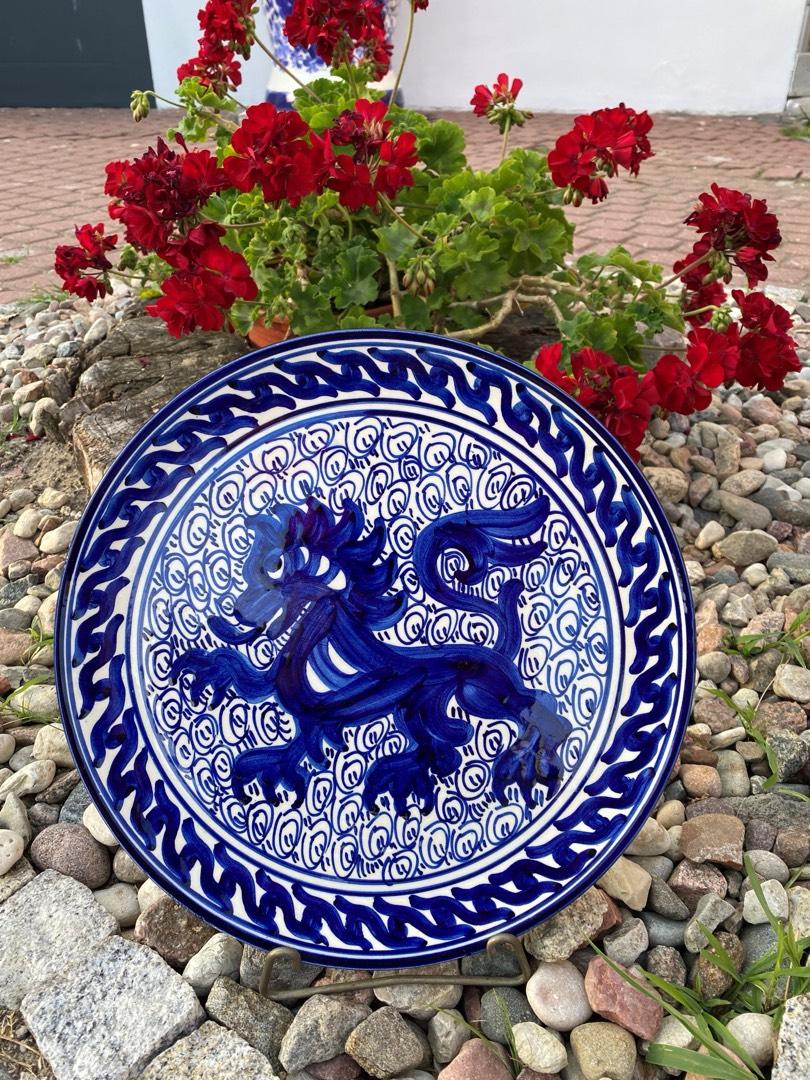 Okazała, ręcznie malowana patera z Hiszpanii prawdopodobnie z lat 70-tych. Sygnowana. Wymiary; 30,5 cm