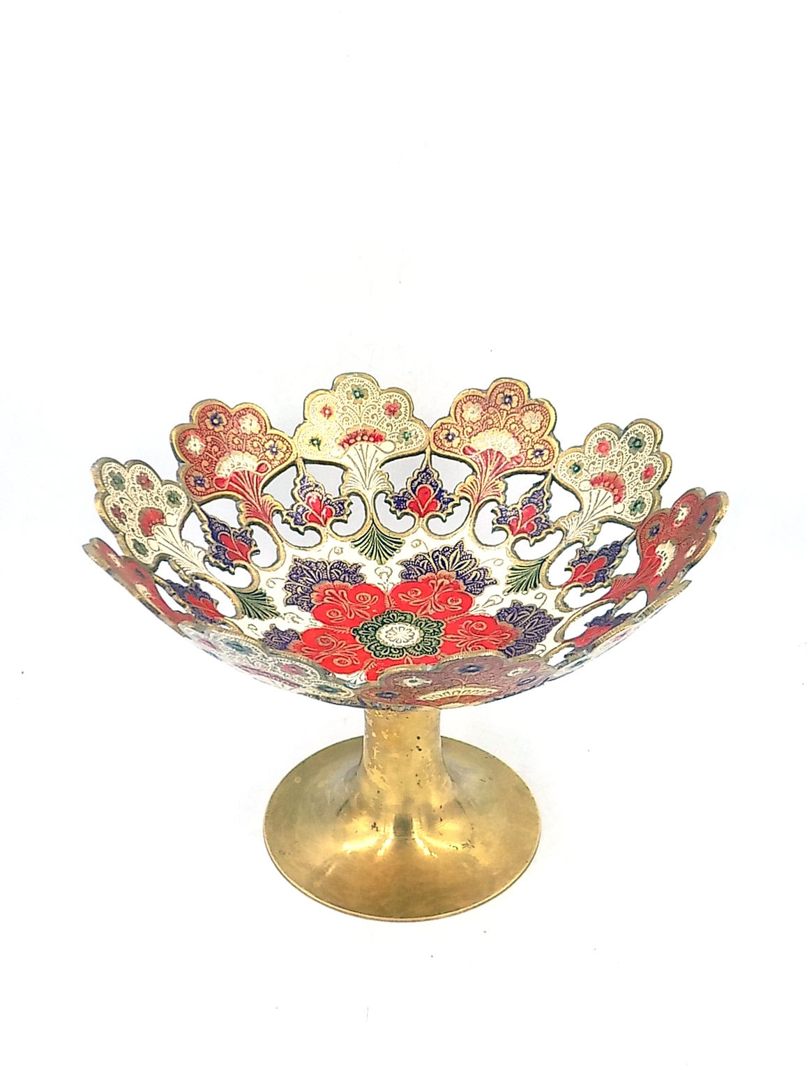 Patera emaliowana z mosiądzu z II poł.XX w. Wymiary; wys.18,5 x 27 cm.