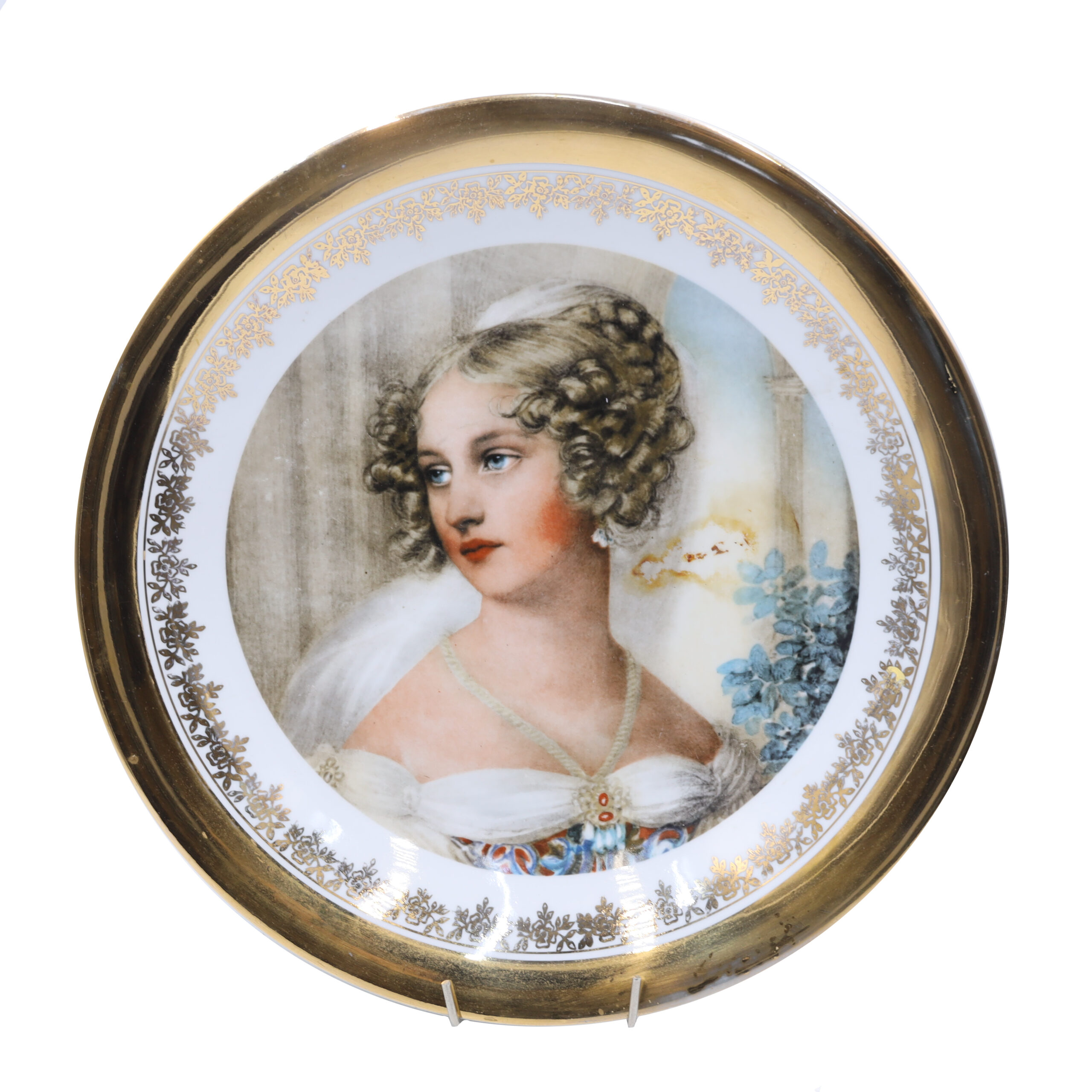 Porcelanowy talerz dekoracyjny z Fabryki Porcelany Krzysztof w Wałbrzychu. Sygnatura stosowana po 1953 roku. Natalia Potocka, Johann Ender.