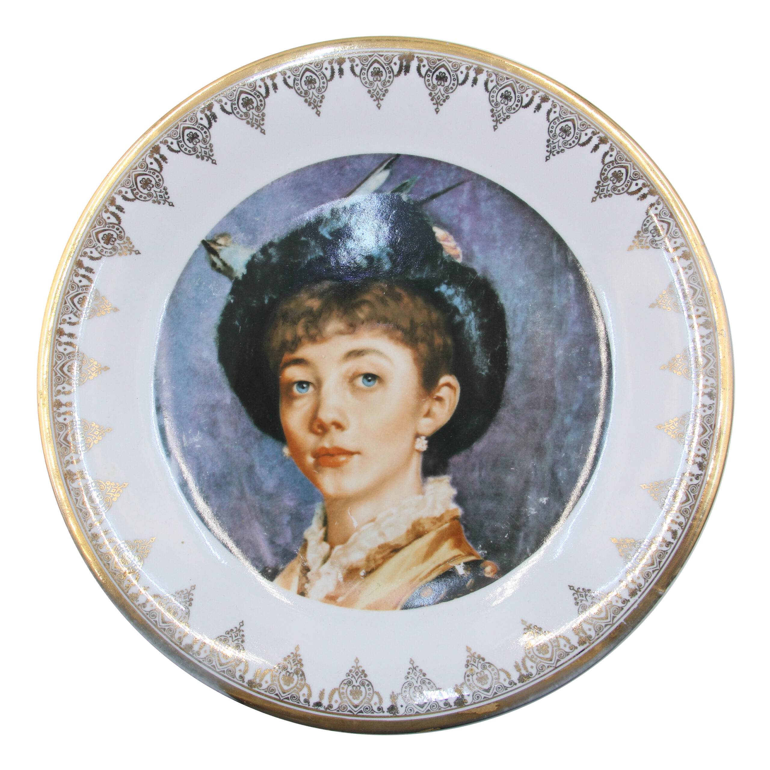 Porcelanowy talerz dekoracyjny z Fabryki Porcelany Krzysztof w Wałbrzychu. Sygnatura po 1953 roku. Portret Młodej Kobiety. Edouard Blanchard.
