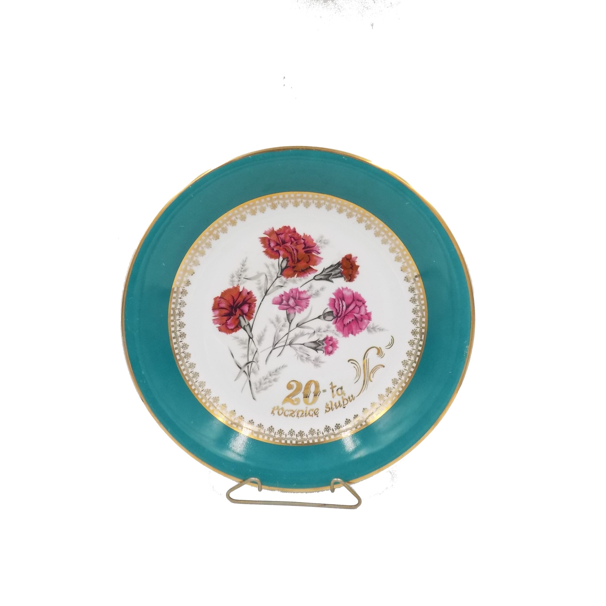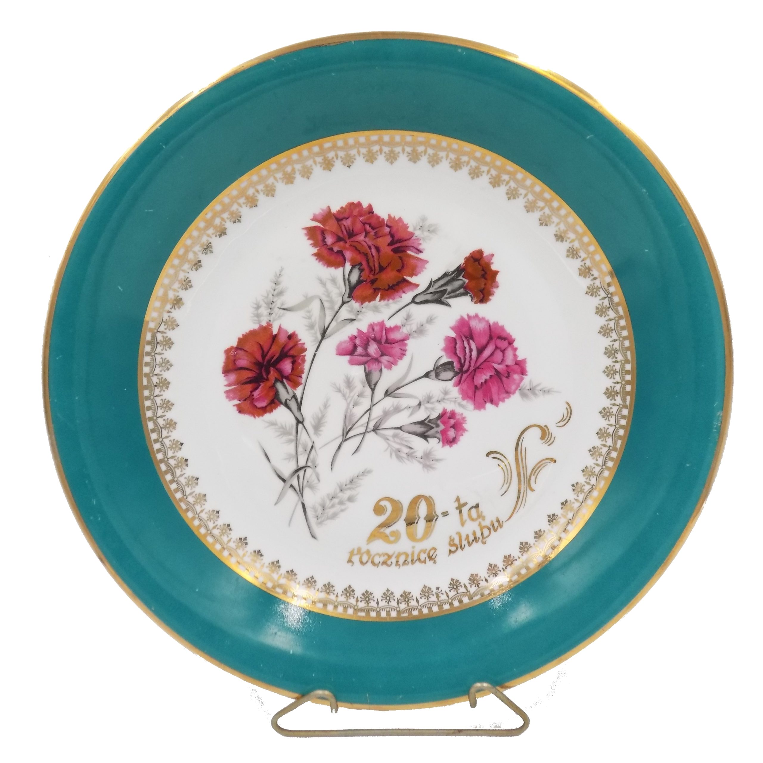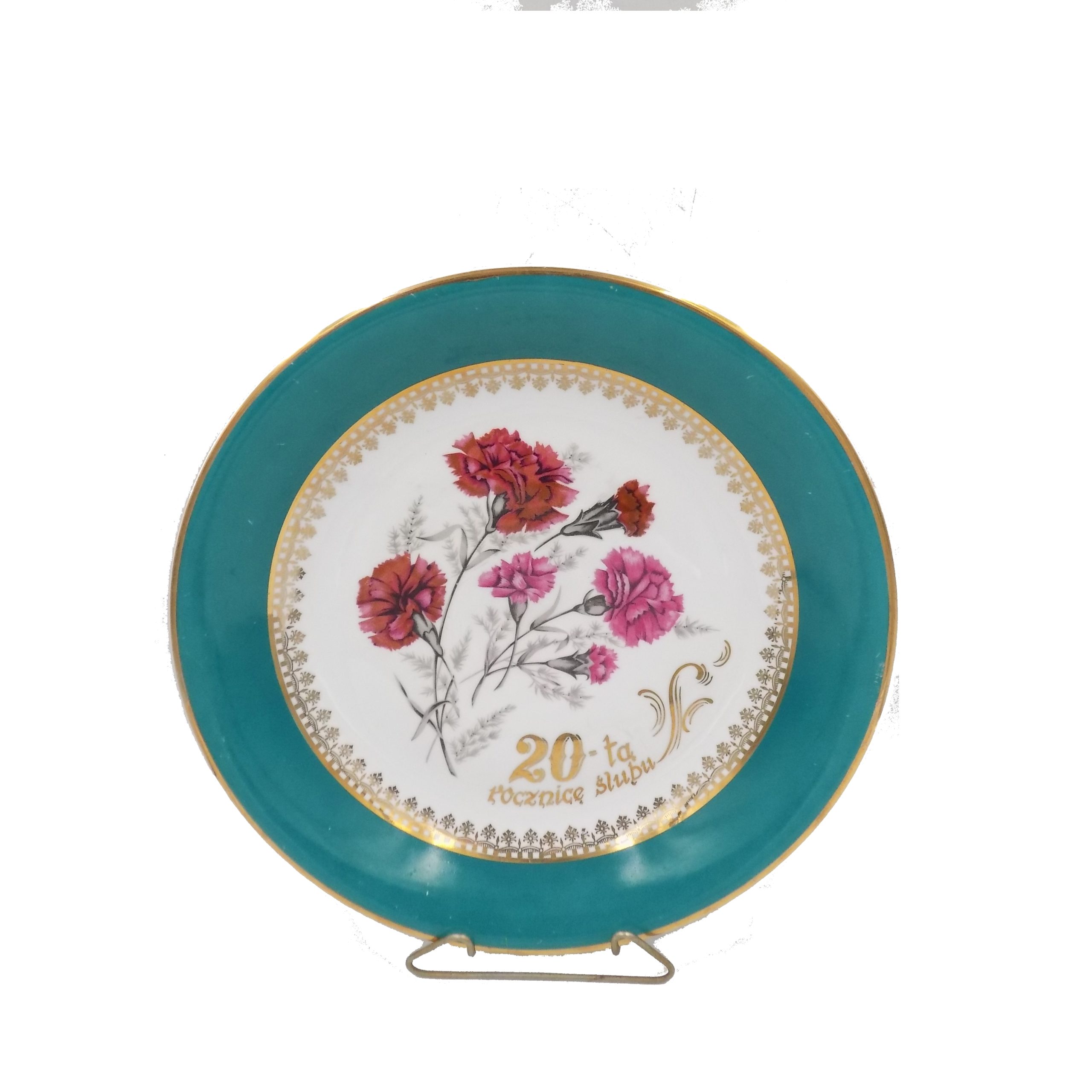 Porcelanowa patera okolicznościowa z Fabryki Porcelany Krzysztof w Wałbrzychu. Sygnatura stosowana od 1953 roku. Wymiary; 32 cm