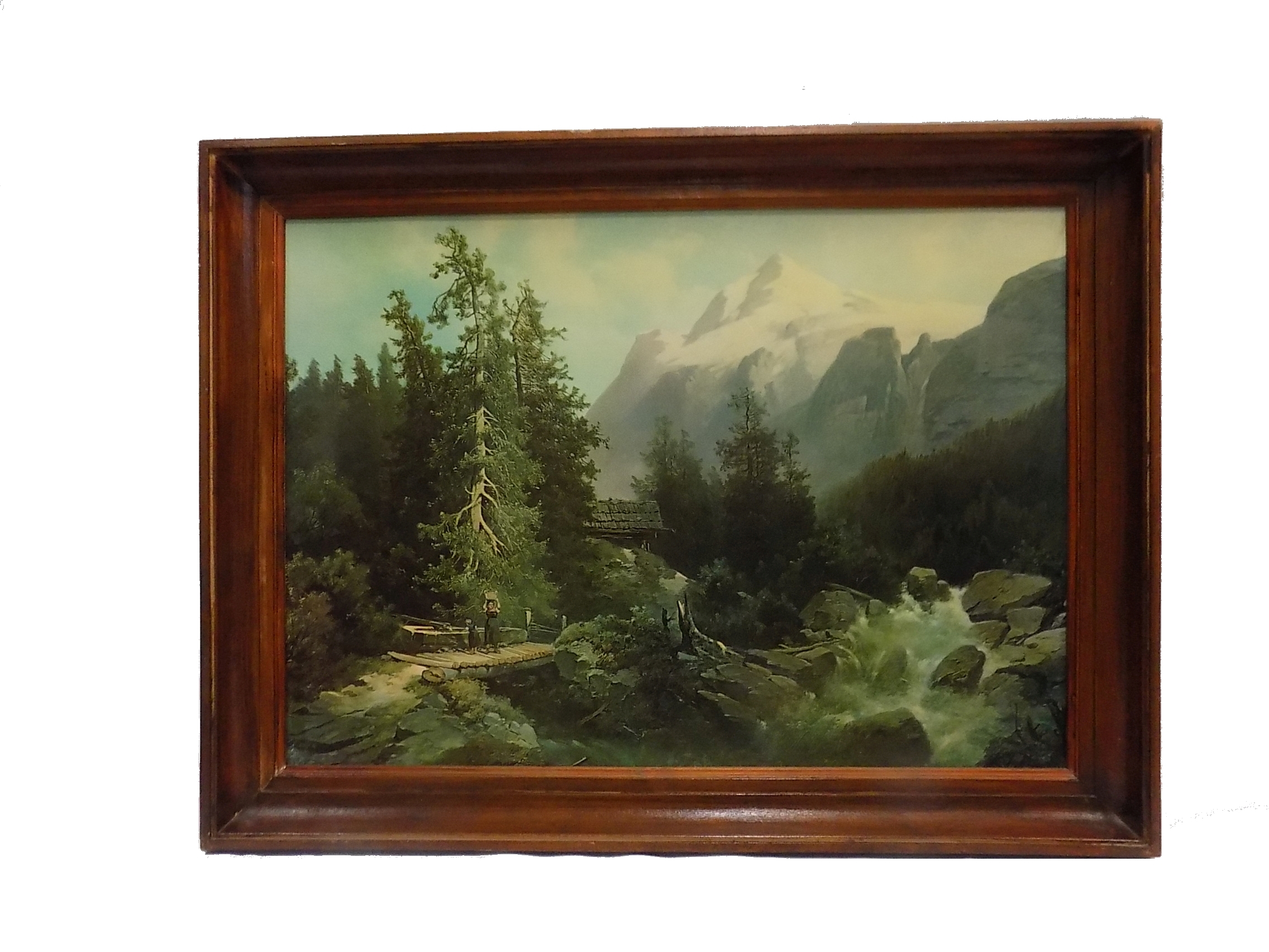 Reprodukcja uszlachetniona ręcznie fakturą malarską na dykcie oprawiona w ramę z okresu PRL. Wymiary; 60 x 80(48 x 68) cm.