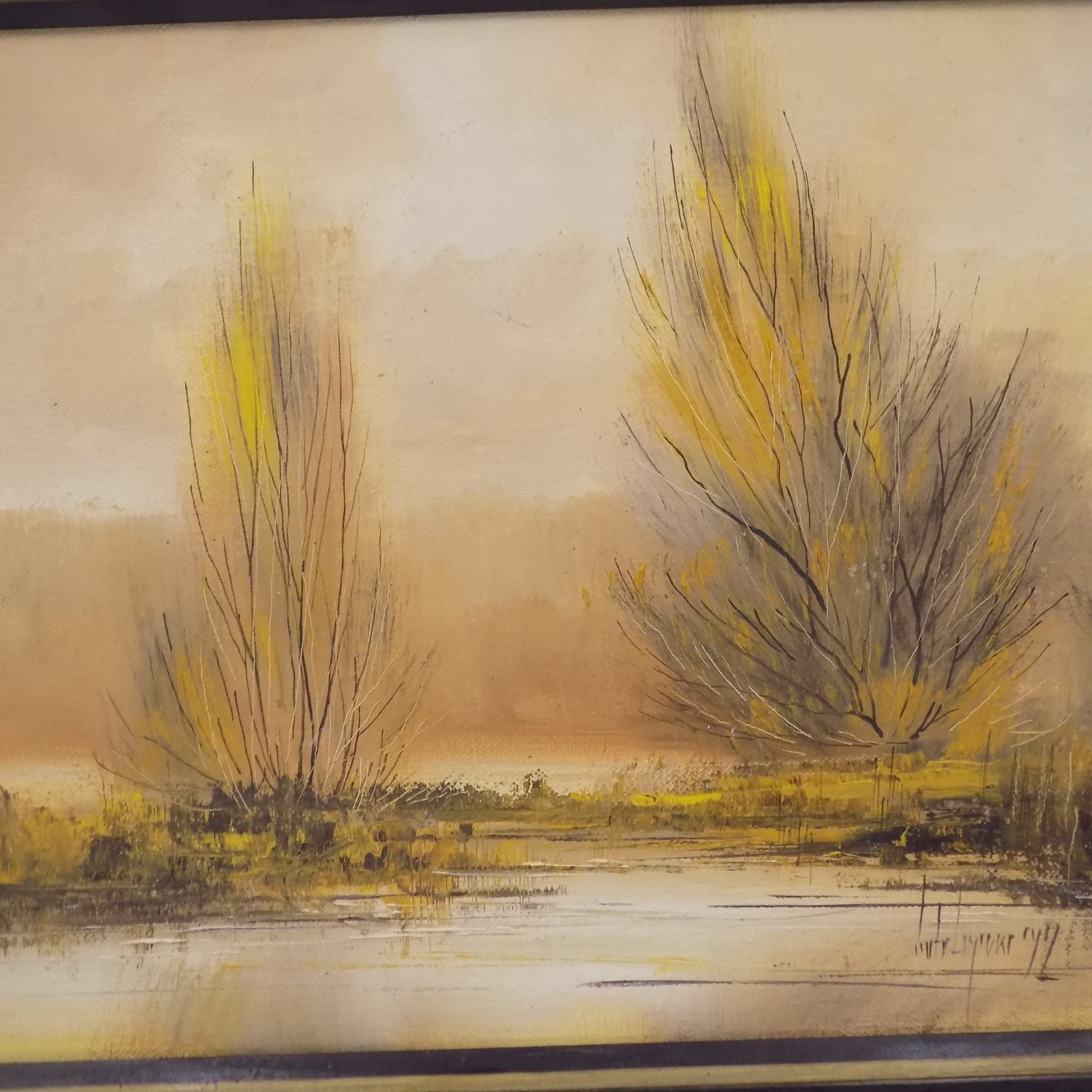 Obraz olejny na płótnie z II poł.XX w. Wymiary; 35 x 43(23 x 32) cm. Sygnowany.