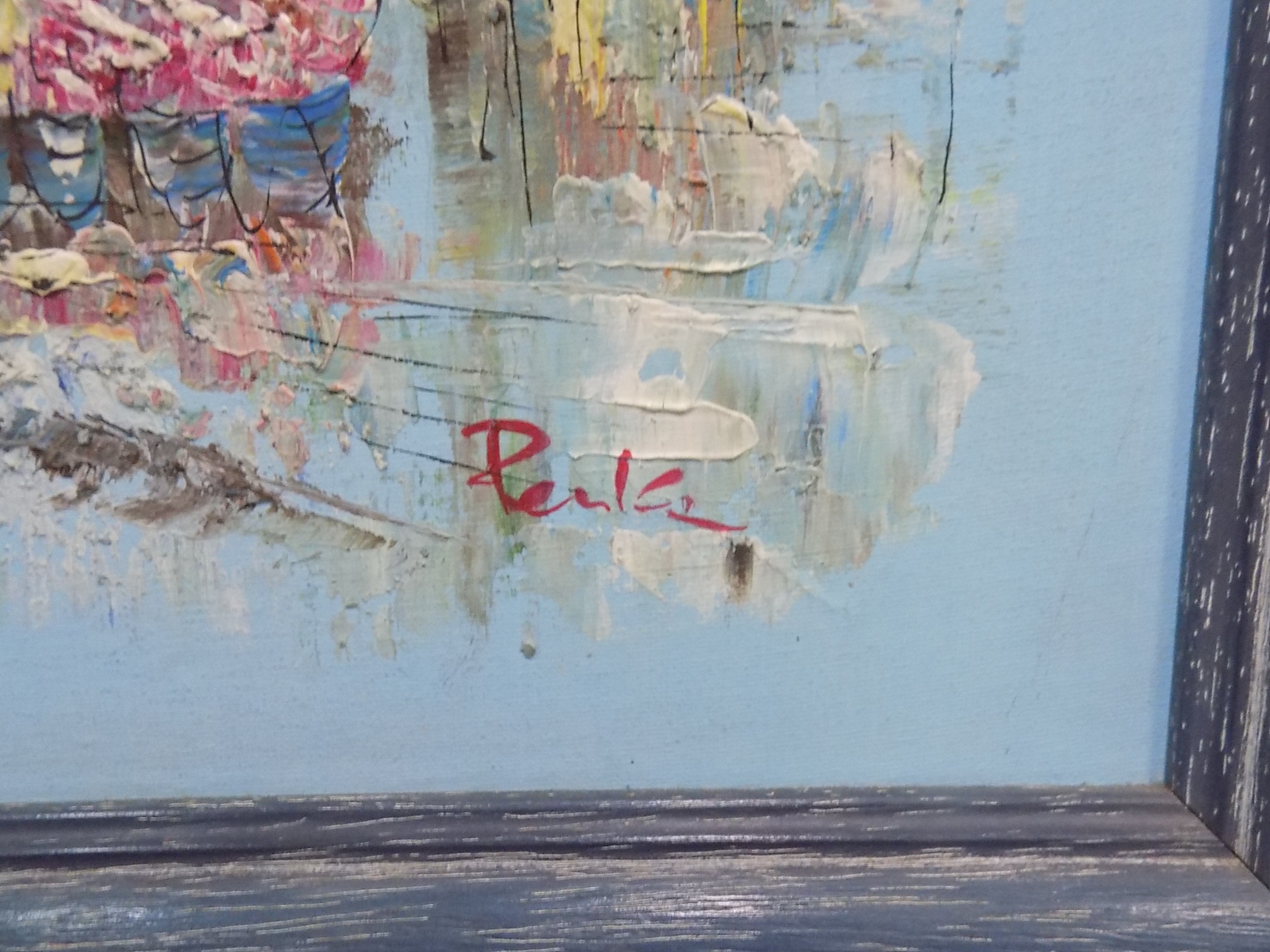 Obraz olejny na dykcie oprawiony w ramę z II poł. XX w. Sygnowany. Wymiary; 62 x 73(49 x 59) cm